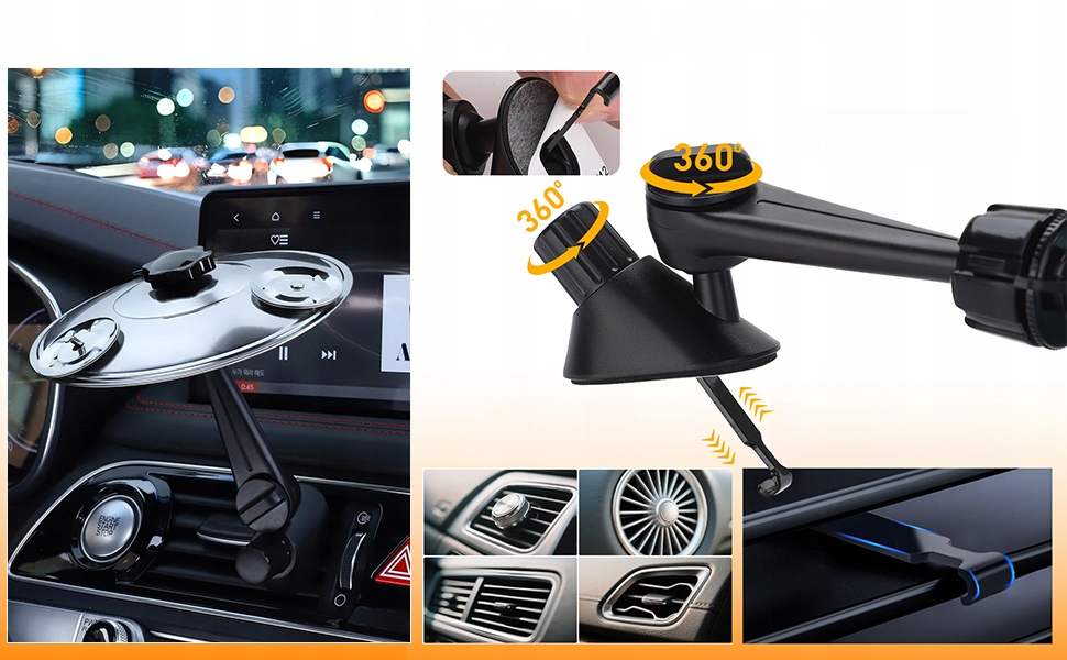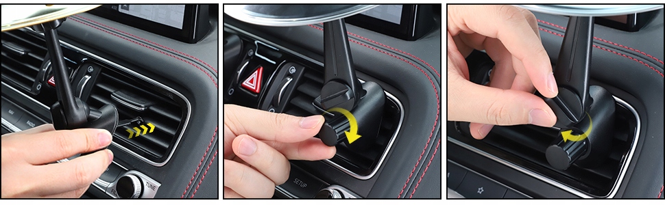 Регулируемое крепление подходит для самых разных модели автомобилей, а горизонтальные или вертикальные вентиляционные отверстия можно фиксировать, а угол можно легко поворачивать для регулировки, что обеспечивает стабильность и не упадет.