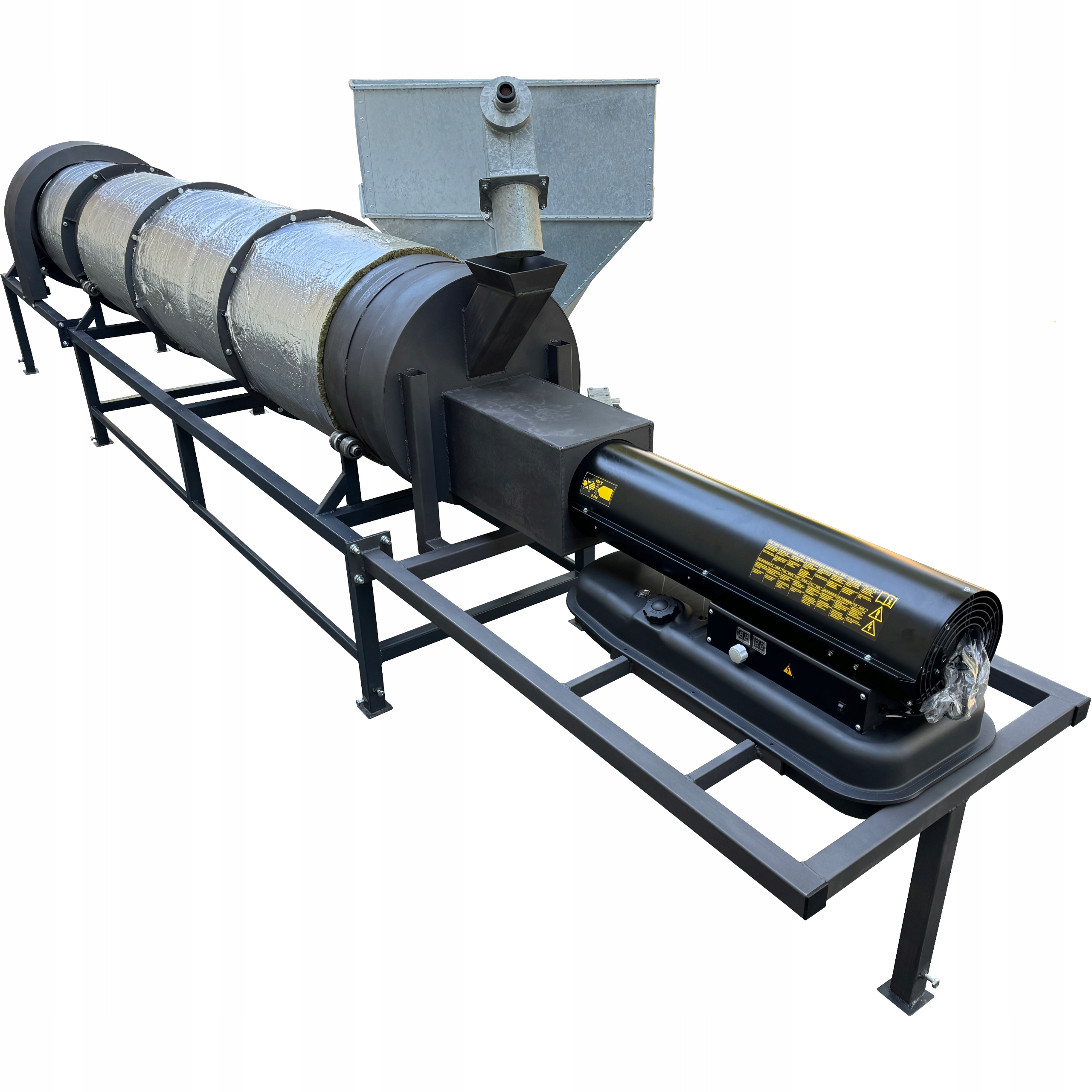 Нагреватель смонтирован на раме из прочных стальных профилей, установленной в начале сушилки.