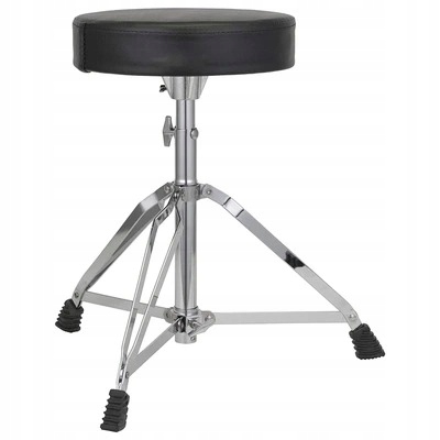 Круглое сиденье диаметром 30 см из пенопласта, обтянутое удобной синтетической кожей (винилом) Сталь, рама из нержавеющей стали (хромированная отделка), складной трехногий штатив, обеспечивает устойчивость и удобство транспортировки. Диапазон регулировки высоты: от 49 см до 59 см, что позволяет удобно регулировать рост барабанщика. Максимальная нагрузка: ок. 80–120 кг (в зависимости от источника) — прочная конструкция подходит для нескольких типов пользователей. Ножки отделаны резиновыми ножками, обеспечивающими устойчивость и защиту поверхности — даже во время интенсивной игры. Легкая и складная конструкция — легко транспортируется и хранится без проблем. Разработано для комфорта во время длительных занятий — сиденье удобное, амортизирующее, но без поддержки спины или поясницы. Простая регулировка и достаточный диапазон высоты для различных стилей игры. Стабильная и легкая конструкция — легко складывается и транспортируется, идеально подходит для репетиций или занятий. дома Удобное толстое сиденье для комфорта даже во время длительных занятий