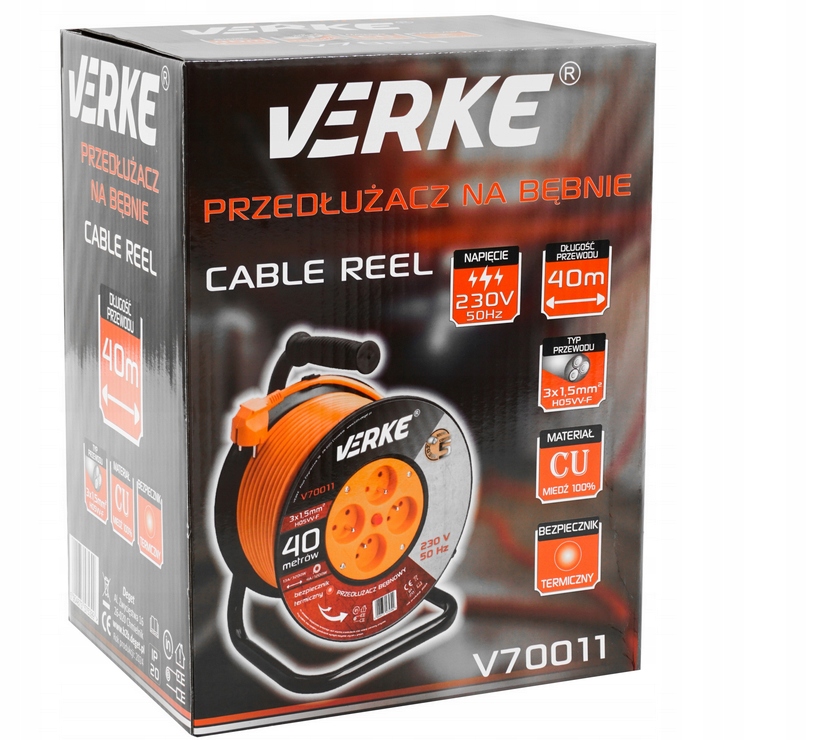 3x1,5 мм удлинителя, 40 м на барабане Verke h1>