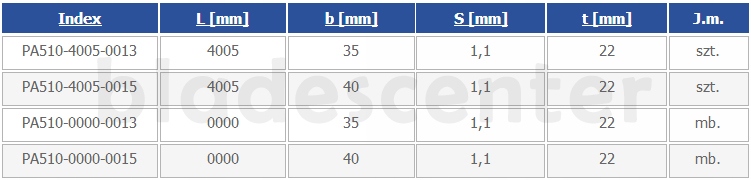 - Ширина (b [мм]): 40