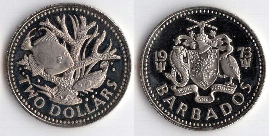БАРБАДОС 2 ДОЛЛАРА SLR 1973 ГОДА