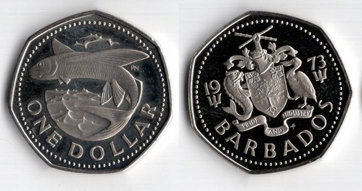 БАРБАДОС 1973 ГОДА НА 1 ДОЛЛАР БОЛЬШЕ