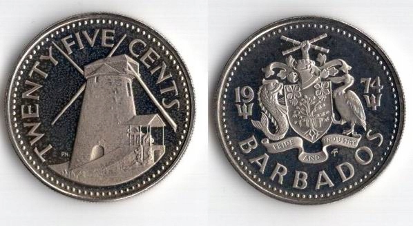 БАРБАДОС 25 ЦЕНТОВ 1974 ГОДА НЕМАГНИТНЫЕ