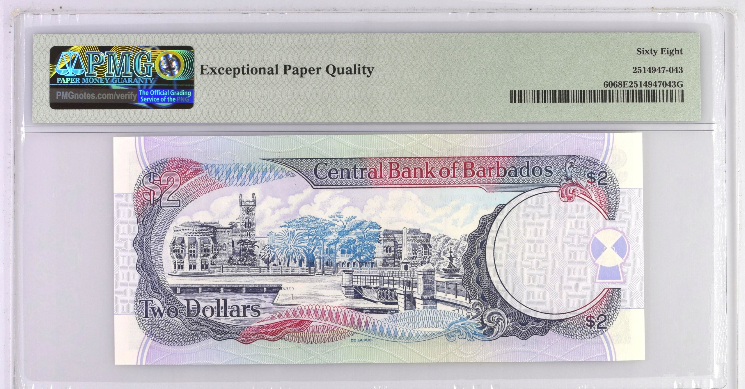 2 доллара Барбадоса 2007 года P-66a UNC PMG 68 EPQ