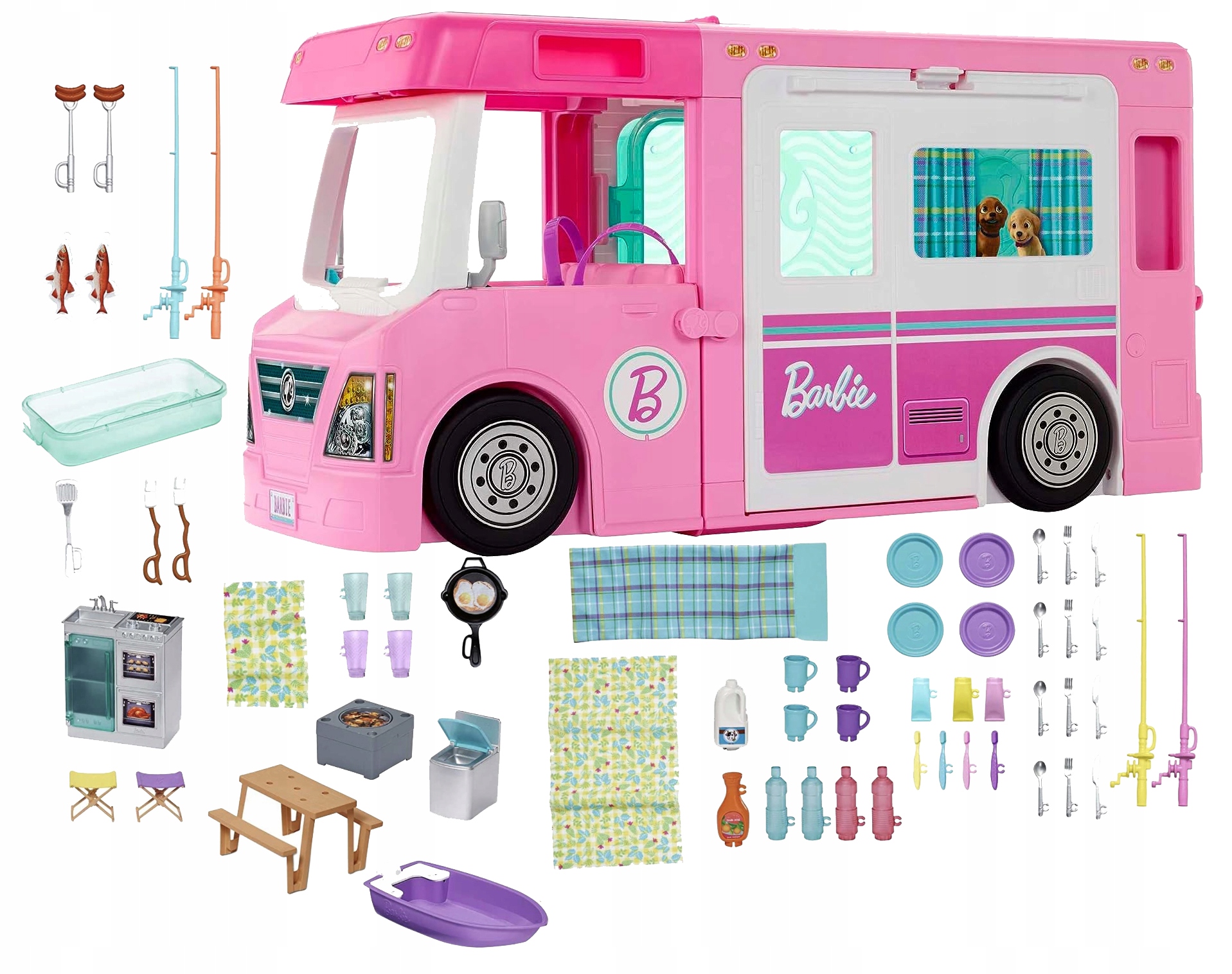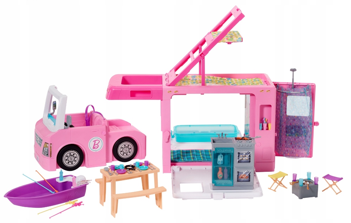 Идите в дорогу с Barbie® 3 в 1 Camper и испытайте много необычных приключений!
