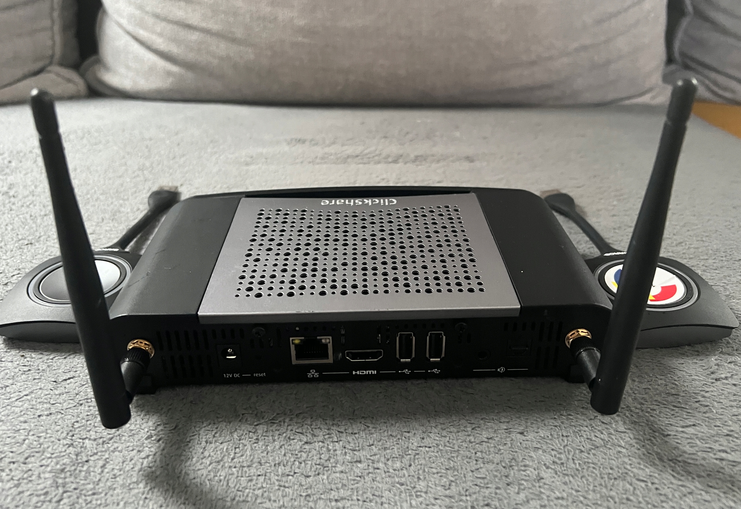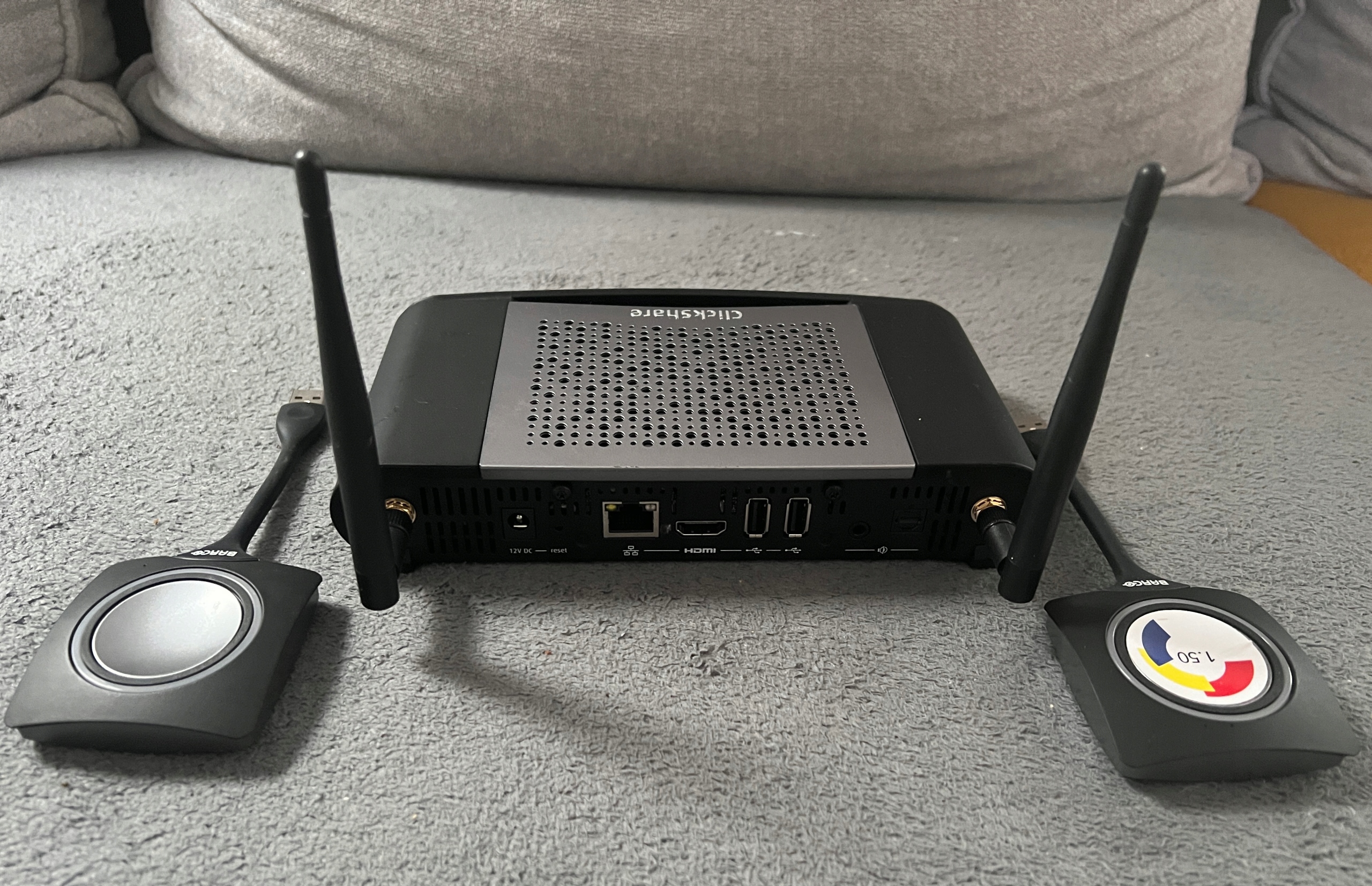- Регулируемый диапазон с модуляцией сигнала; максимум до 30 м - между кнопкой ClickShare и основным устройством ClickShare