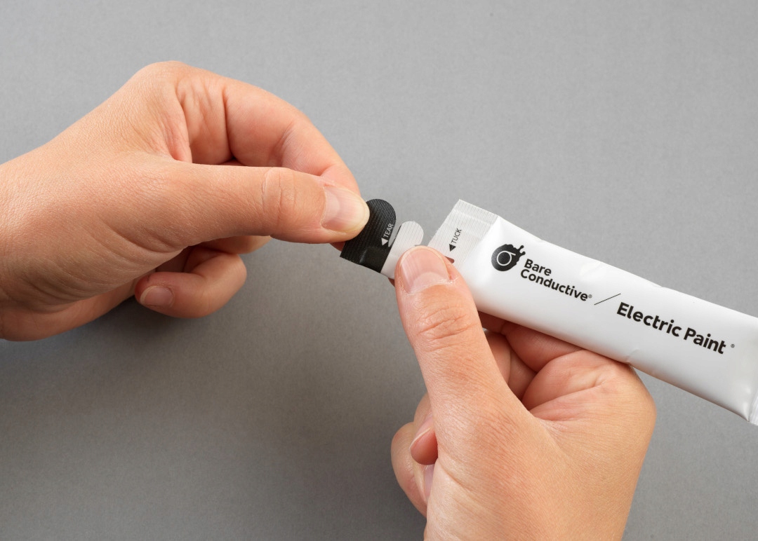 Bare Conductive Electric Paint — это нетоксичная краска на водной основе. В случае ошибки или загрязнения ее можно легко удалить водой с мылом. Краска отличается безопасными ингредиентами (без вредных растворителей) и быстро сохнет – при комнатной температуре нужно подождать всего 10 – 15 минут.