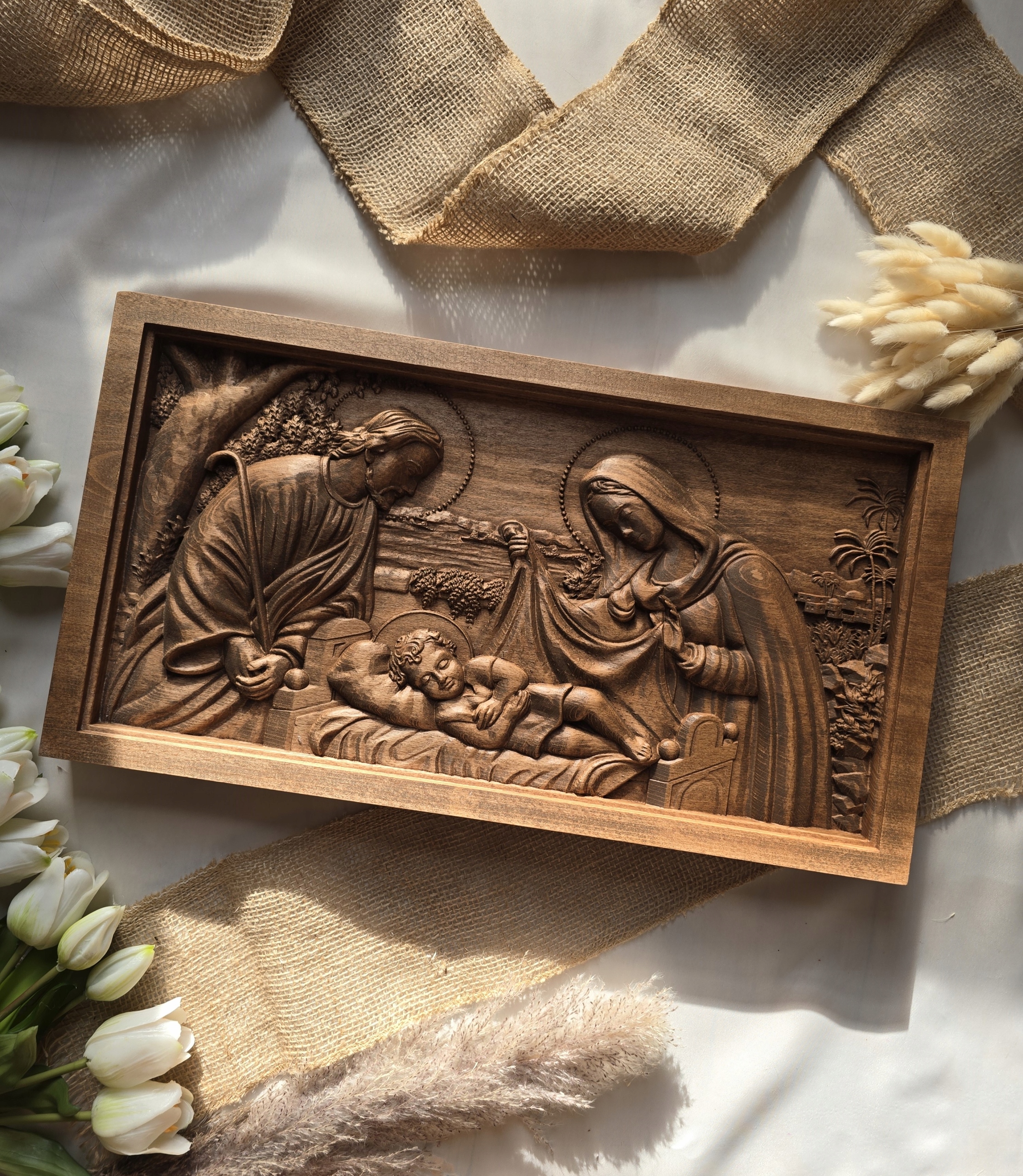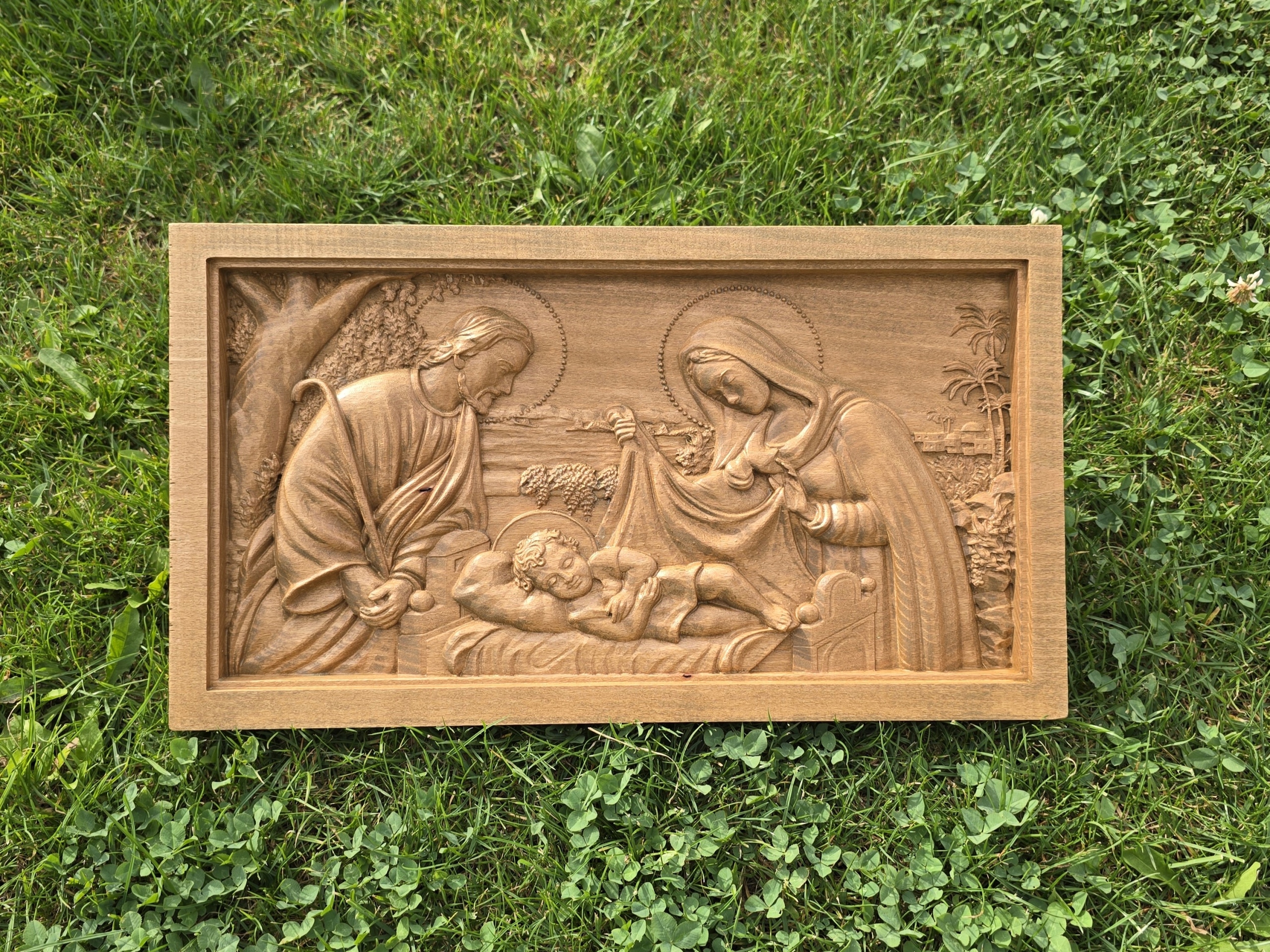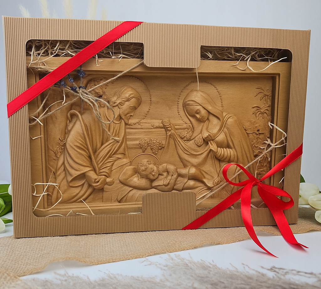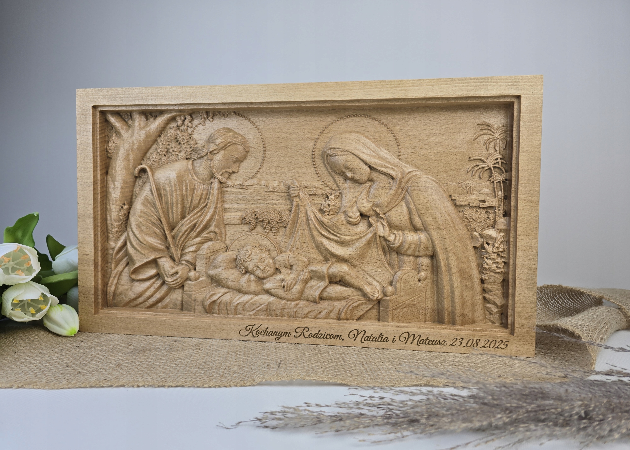 Деревянный барельеф с изображением Святого Семейства – глубокий символ любви, единения и взаимной преданности. Показанные вместе Мария, Иосиф и Младенец Иисус напоминают нам о силе семьи, основанной на вере, взаимном доверии и заботе ❤️.