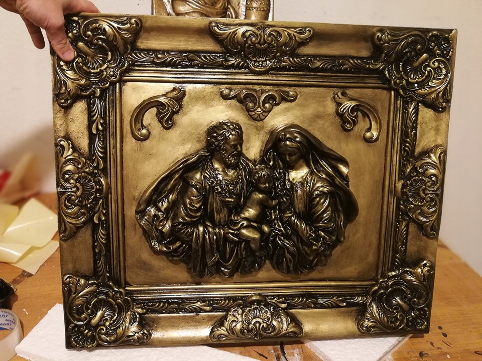 НОВИНКА!!! РЕЛЬЕФНЫЙ АРТЕФАКТ СВЯТОЕ СЕМЕЙСТВО, ЦВЕТ АНТИЧНОЕ ЗОЛОТО, ПАТИНА! РЕЛЬЕФ РУЧНАЯ РАСКРАСКА В СТАРОМ ВИДЕ. КРАСИВЫЙ БАЗЕРЕЛЬЕФ! РУЧНАЯ РАБОТА!!! .