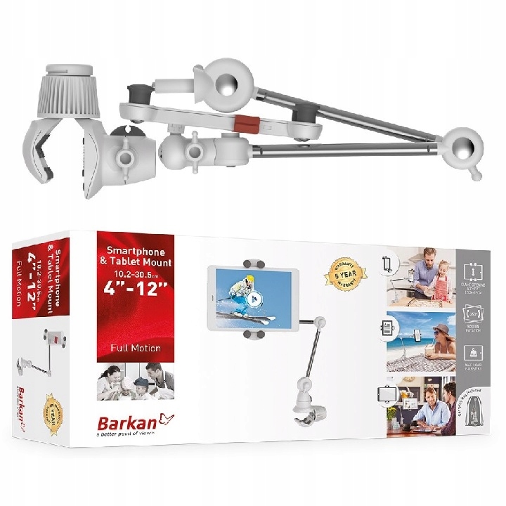 Barkan Biały Obrotowy Długi Wieszak Uchwyt Ścienny Telewizora 13-65" Barkan