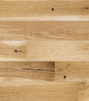 Пол выполнен из дуба и покрыт матовым лаком. Этот матовый блеск придает полу элегантность и класс. Характерной особенностью этой древесины также является браширование, подчеркивающее ее естественную структуру, придающее интерьеру теплоту и выразительность.
