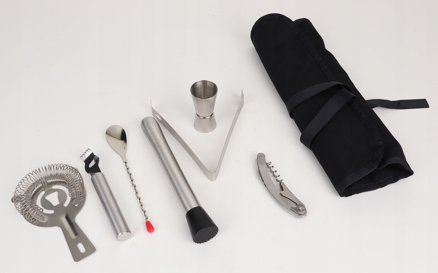 В комплект входят 7 базовых барменских аксессуаров для приготовления профессиональных напитков + кейс.