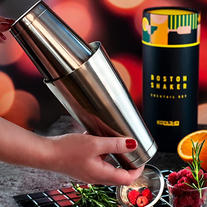 НЕЗАБЫВАЕМЫЕ МОМЕНТЫ С ДРУЗЬЯМИ! Смешивать напитки и безалкогольные коктейли как профессионал на следующей домашней вечеринке будет очень весело. Шейкер Boston из нержавеющей стали прост в использовании: поместите небольшую невесомую металлическую чашку емкостью 600 мл над большой банкой Boston емкостью 800 мл под небольшим углом и постучите по ней рукой, чтобы обеспечить водонепроницаемое соединение.