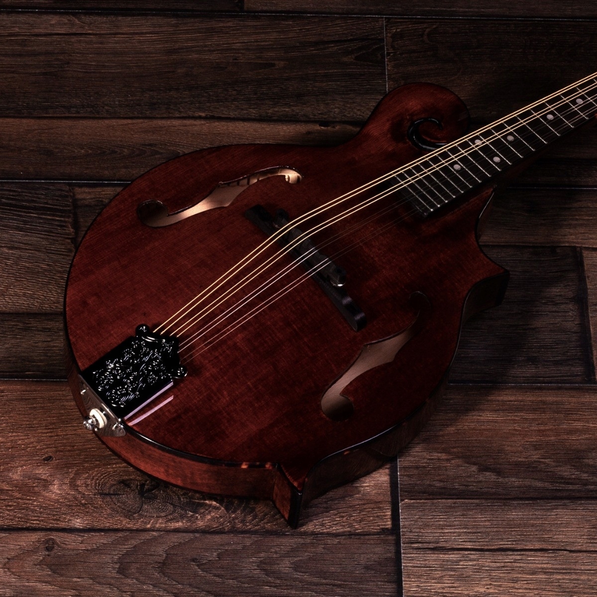 Мандолины F-стиля, на которых обычно играют профессиональные музыканты, имеют точно закругленную верхнюю часть тела и голову, что эстетически отличает их от мандолин A-стиля и требует более высокого уровня мастерства.