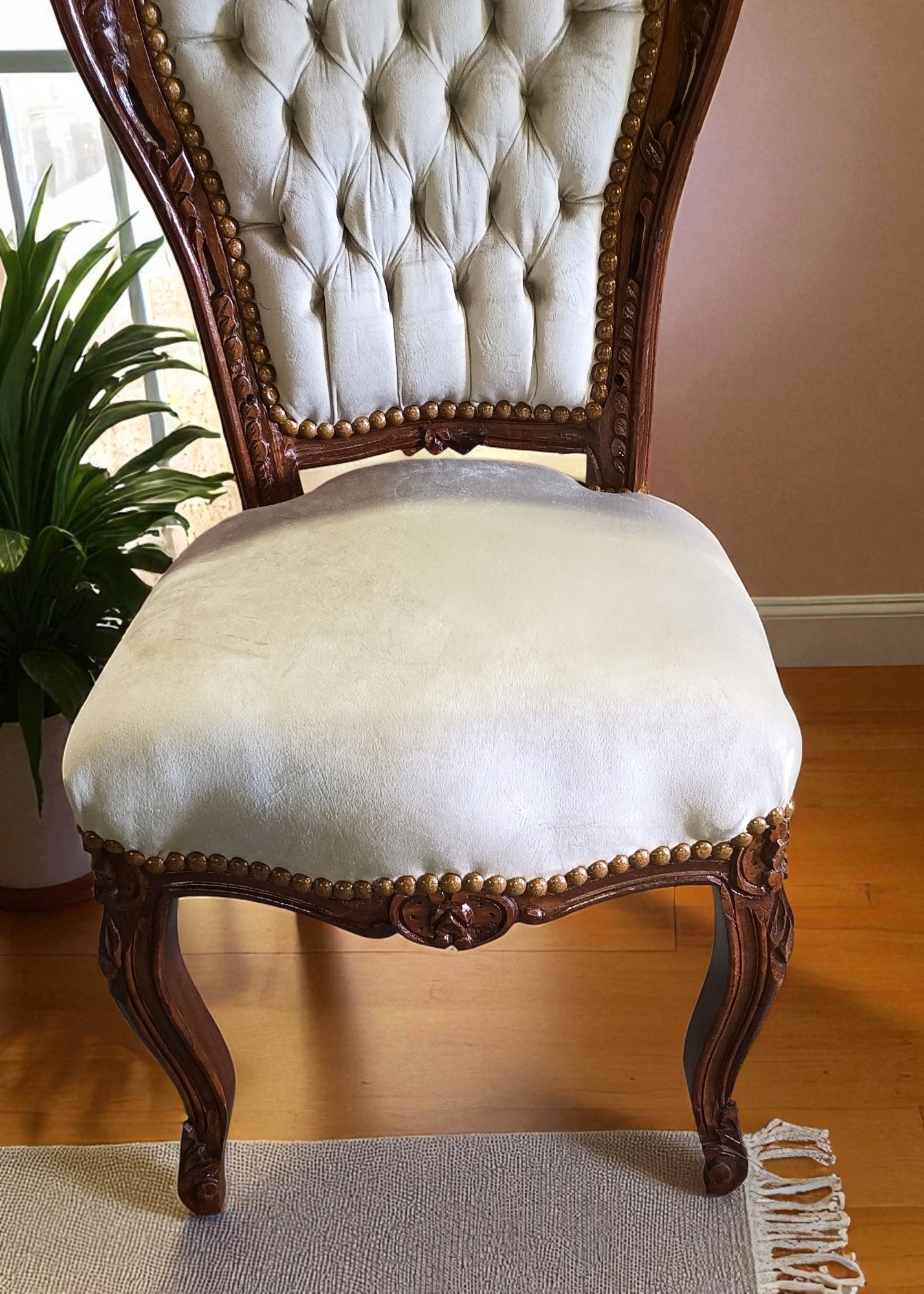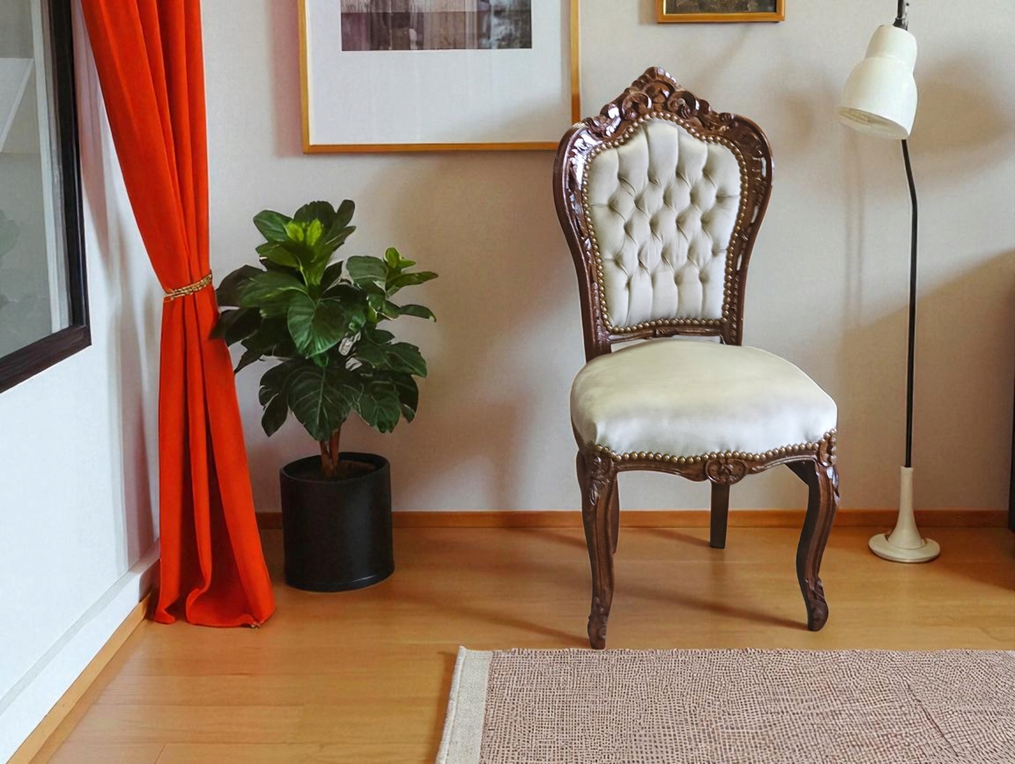 Стул в стиле барокко темно -ореховый свет бежевый тип плюш kl