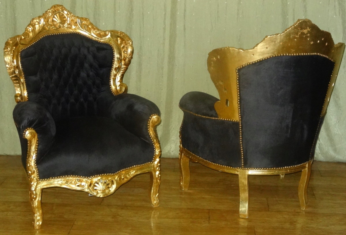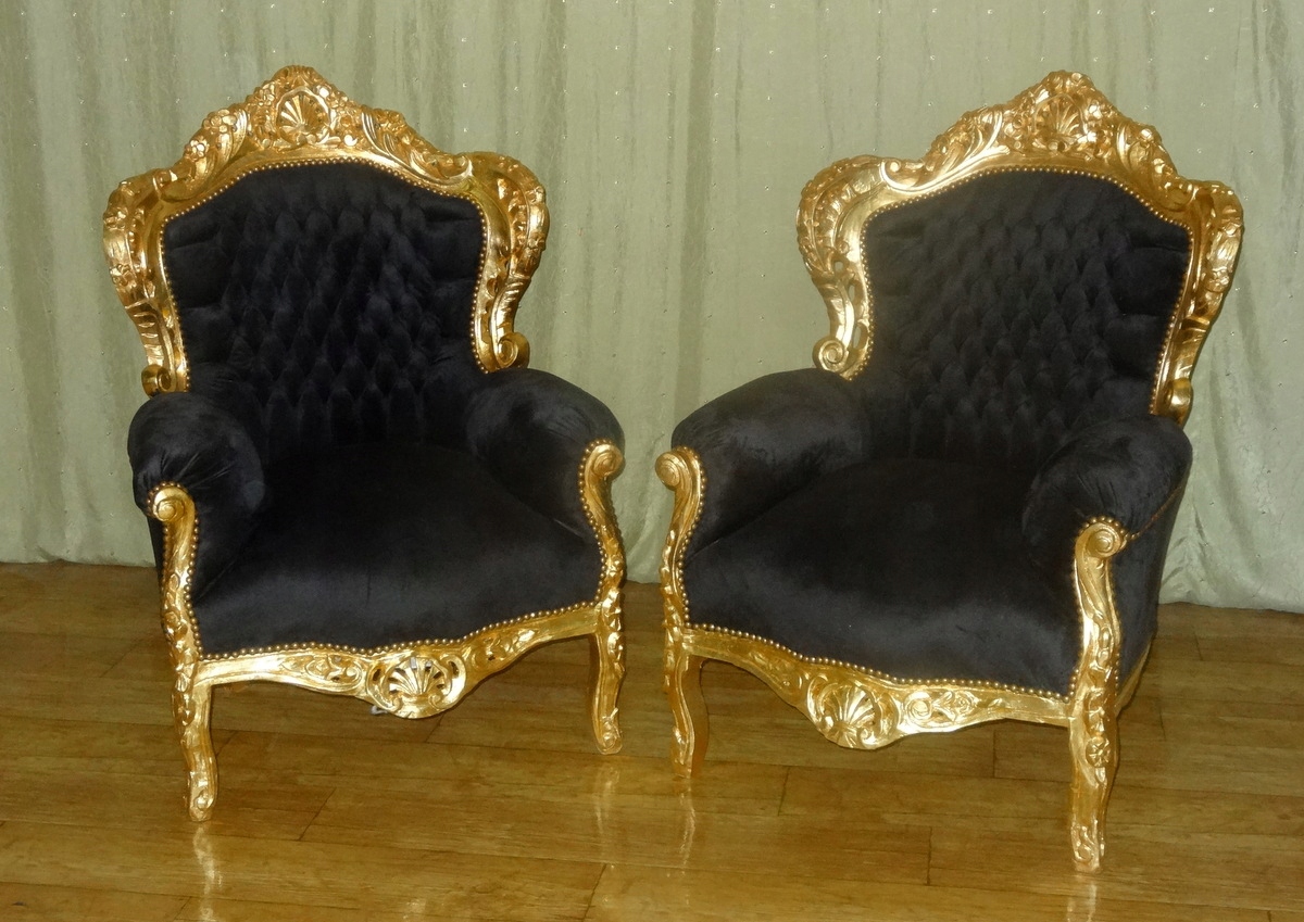 Бароко Крісло Бароко Стильне Сидіння Гламур Ретро Золотий Чорний