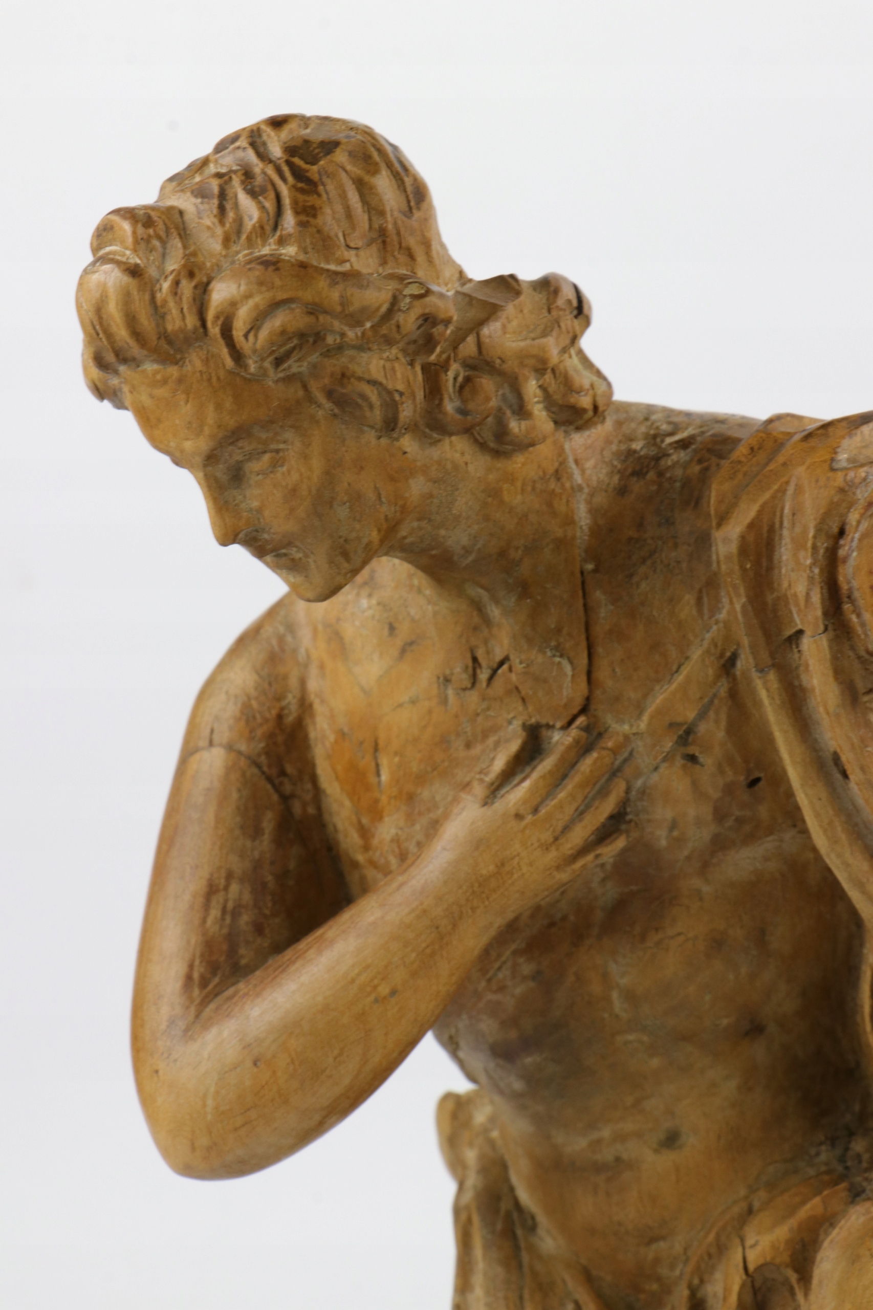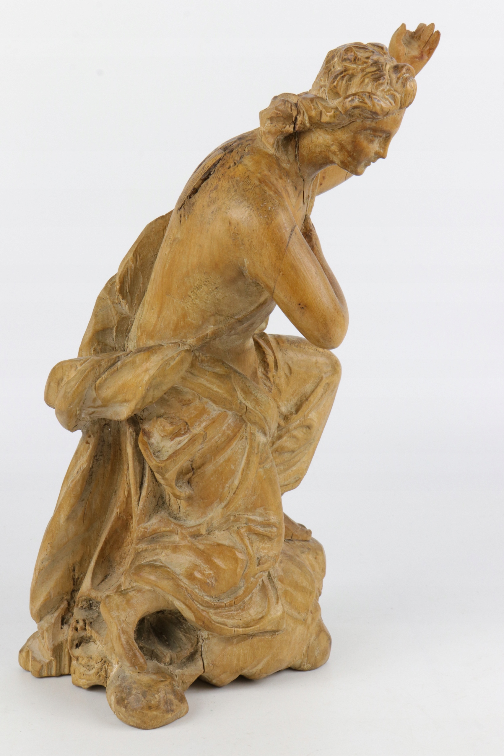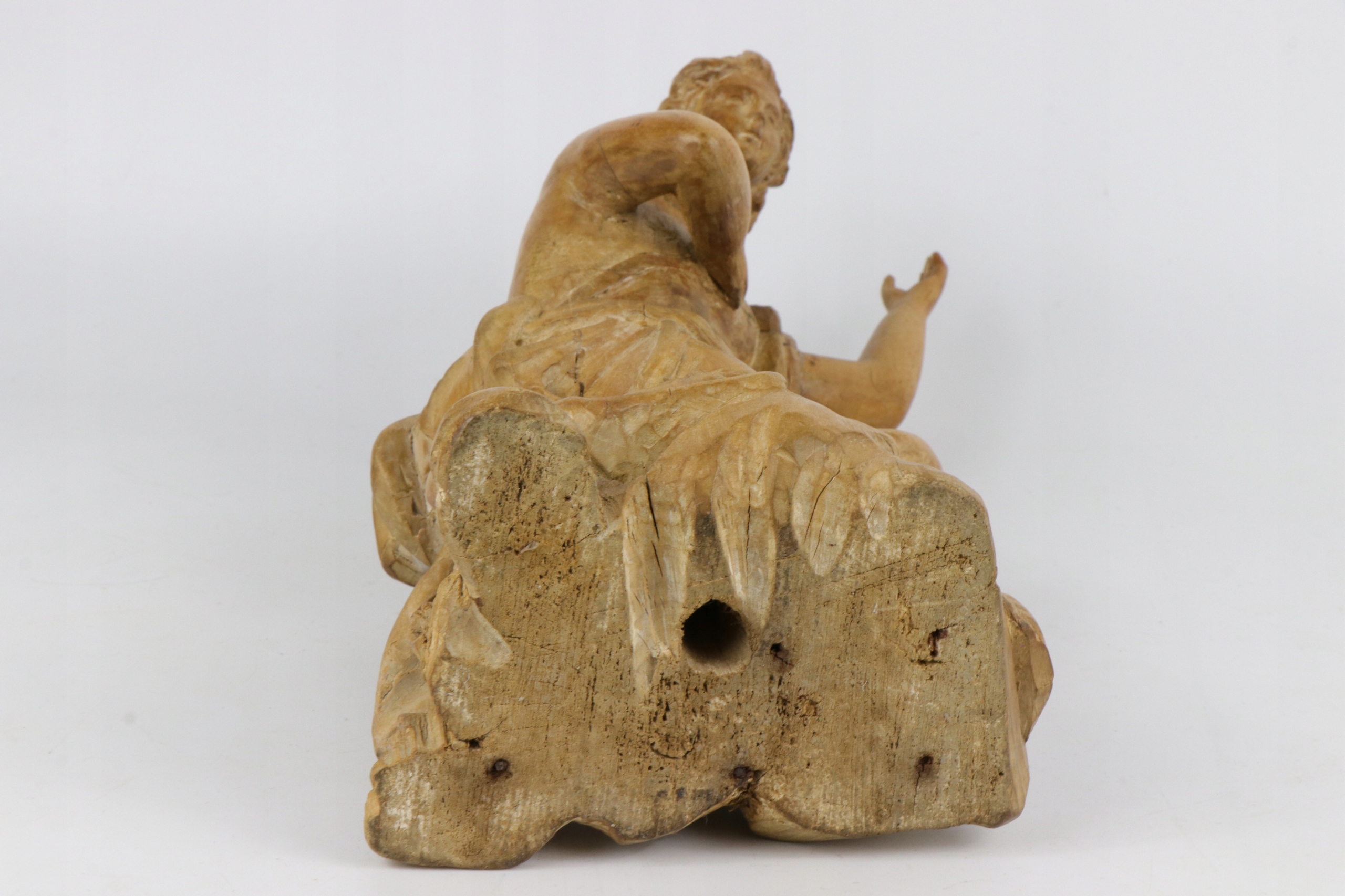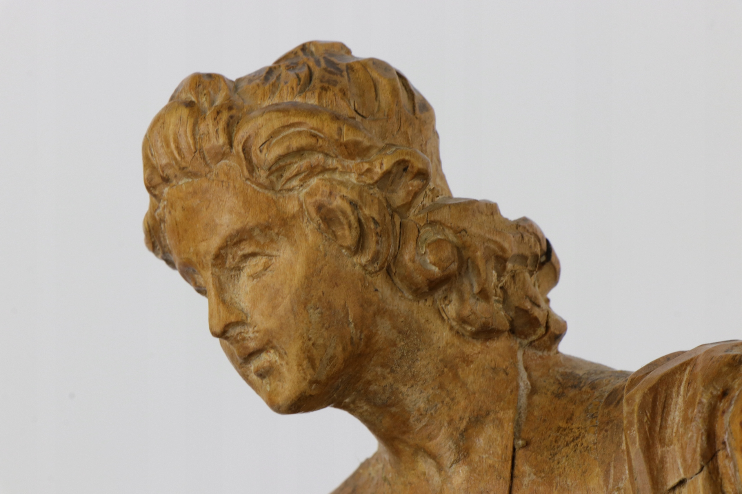 Резьба по дереву по-моему XVIII века в стиле барокко. На ней изображен ангел, сзади на спине видны места установки крыльев. Дерево скорее всего липа или бук(?), на другом аукционе предлагаю еще одного очень похожего ангелочка, скорее всего работы того же художника. Народная мастерская Франция.