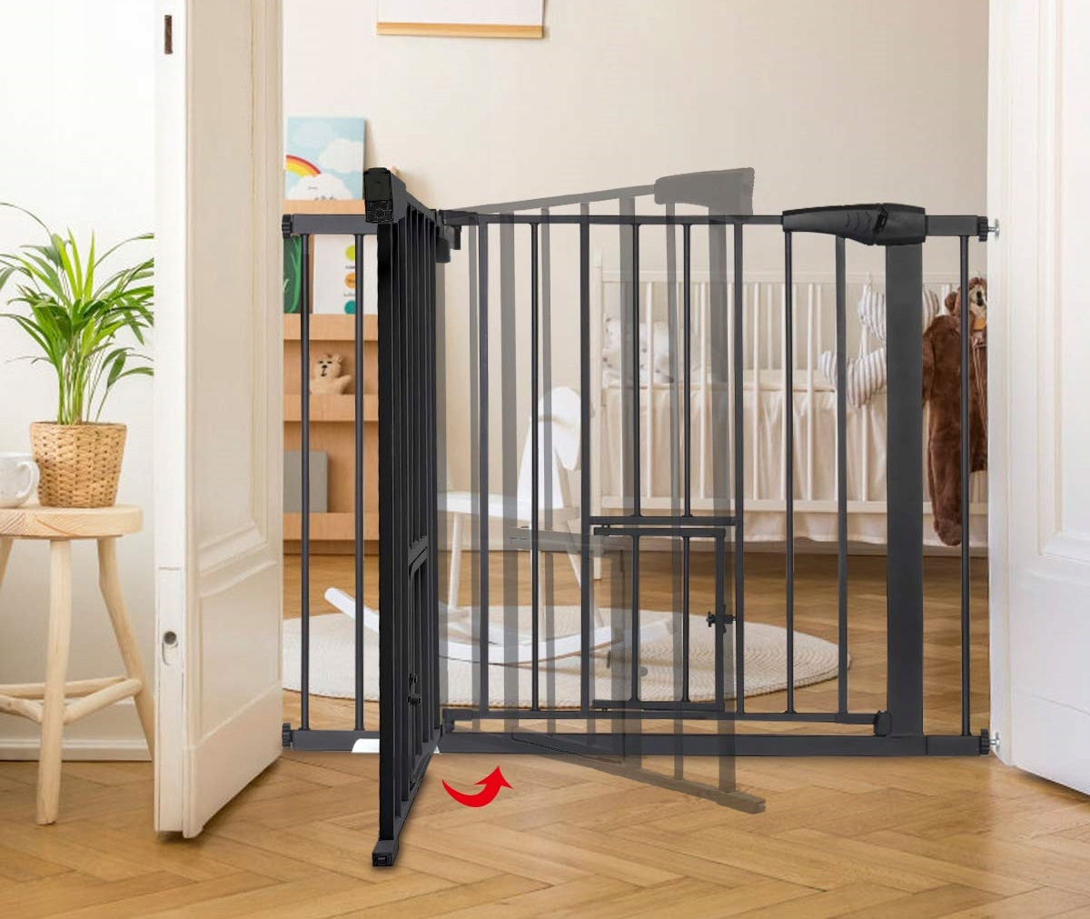 - ✔ Магнитная конструкция. Ворота, открытые под углом менее 90°, закрываются автоматически. Угол открытия более 90° останется открытым. Детскими воротами легко управлять одной рукой.