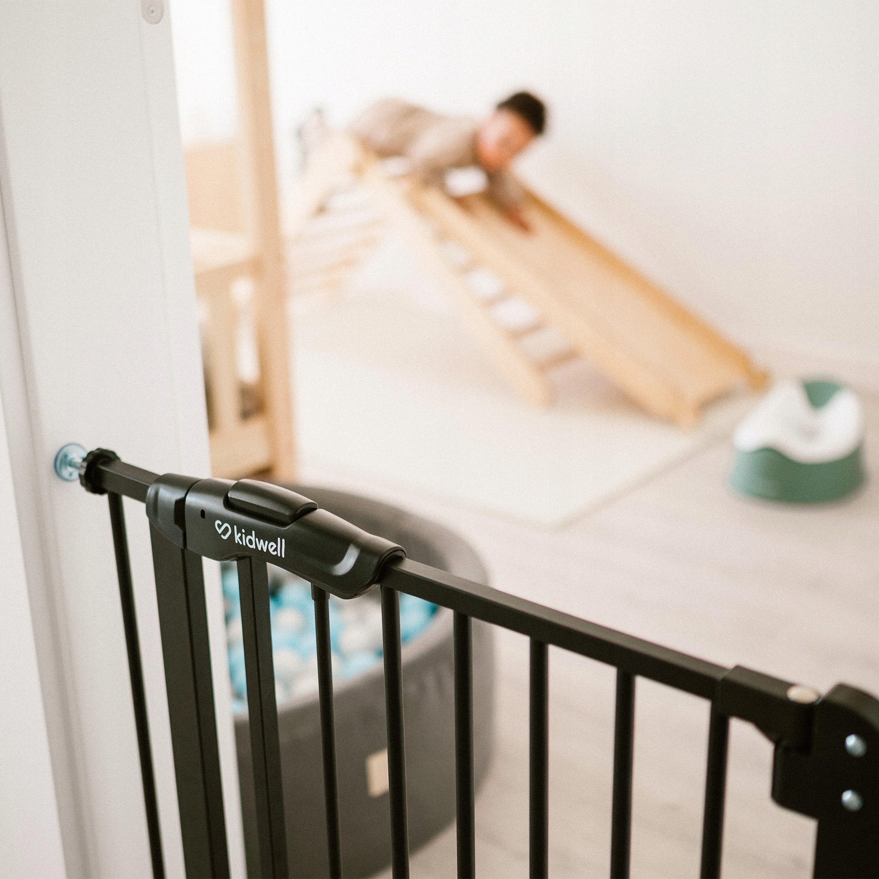 Вам не нужно беспокоиться, если затворы закрыты. Ворота оснащены двойным открывающимся замком , что дает уверен, что ребенок не откроет цель. Кроме того, Guard's Gate имеет блокаду за 90 °. остается открытым и не закрывается, что облегчает использование.