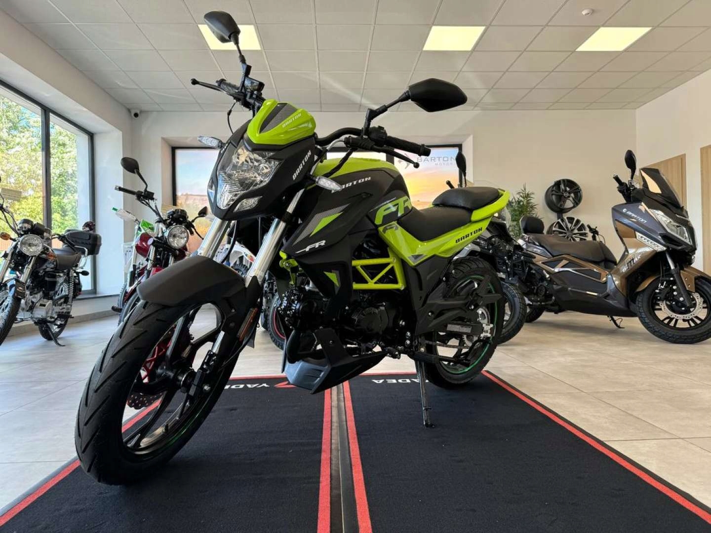 Бартон фокусируется на современности. Злющий силуэт гонщика, одетый в двигатель, что позволило ездить уже 14-летних с водительскими лицензиями в категории AM. Радость повседневных путешествий в школу или на работу!