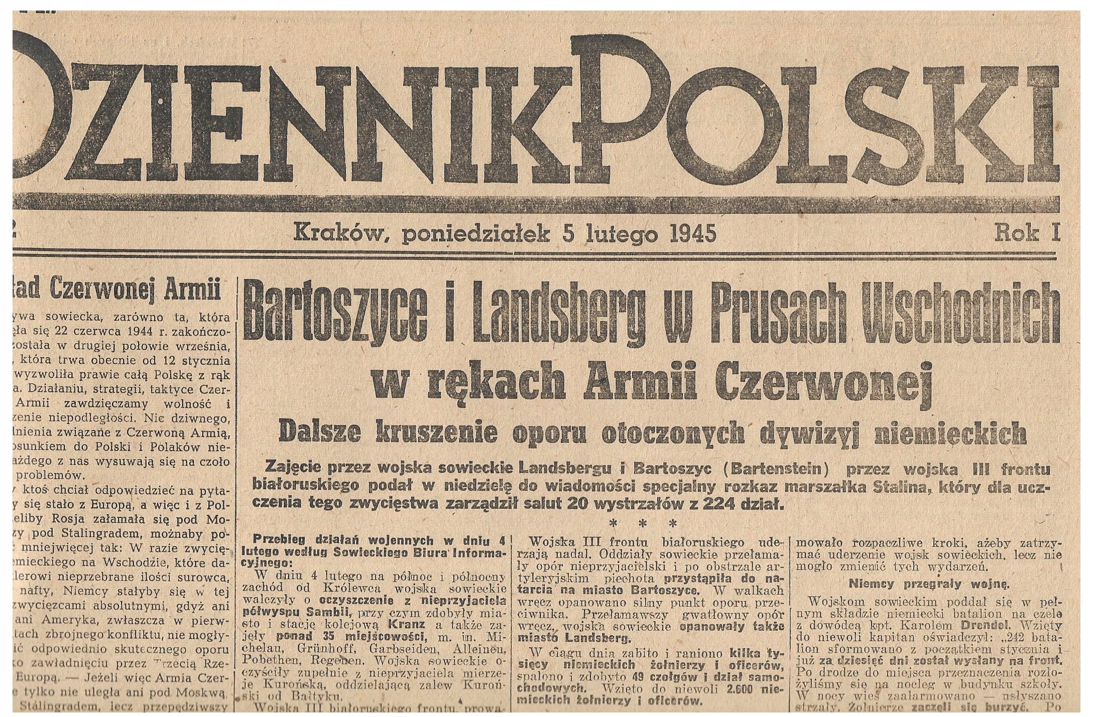 . Статья под названием «Bartoszyce и Landsberg в Восточной Пруссии, полученная