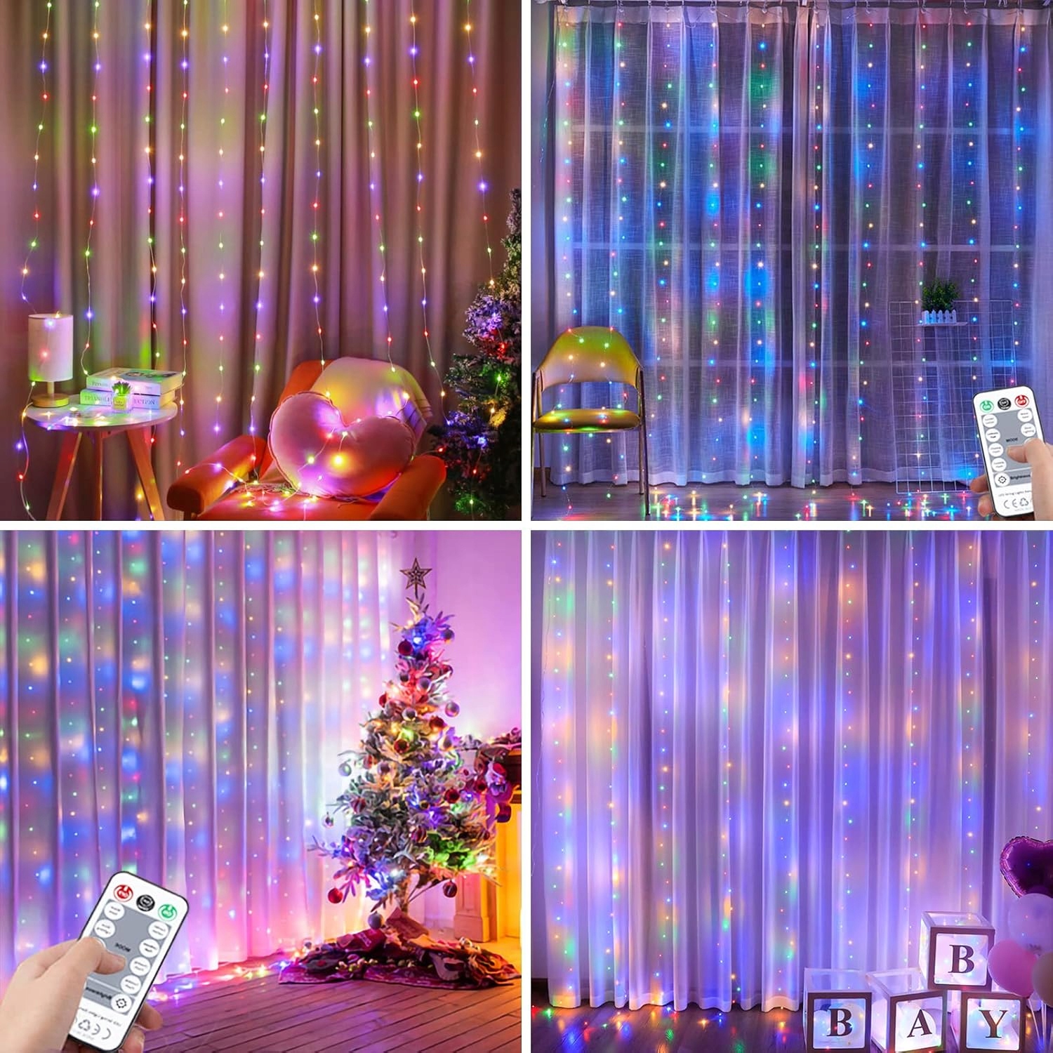 , 9 x 2,9 м 300 светодиодов, мульти -королевые шторы, изготовленные из медного провода. Повесьте их на двери и окна или за материалами, чтобы создать действительно волшебный вид. Вспышка, медленное исчезновение, мерцание/мигание и постоянное переключение. Красиво и практично, вы можете выбрать разные режимы и добавить различные вибрации в свою комнату, создает радостную и праздничную атмосферу для вашей семьи и друзей. нажав кнопку USB или с помощью пульта дистанционного управления. С помощью беспроводного дистанционного управления вы можете настроить яркости, переключать 8 режимов, установить таймер на 6 часов и 18 часов. Держите их подальше от воды. Низкое напряжение не перегревается после многих часов использования, безопасно к прикосновению после часов использования. , День святого Валентина, фестиваль, праздники и т. Д. Также идеально подходят для использования внутри и снаружи, для спальни, штор, кустарников, общежития и сада, патио, балкона или везде, где необходимо декоративное освещение