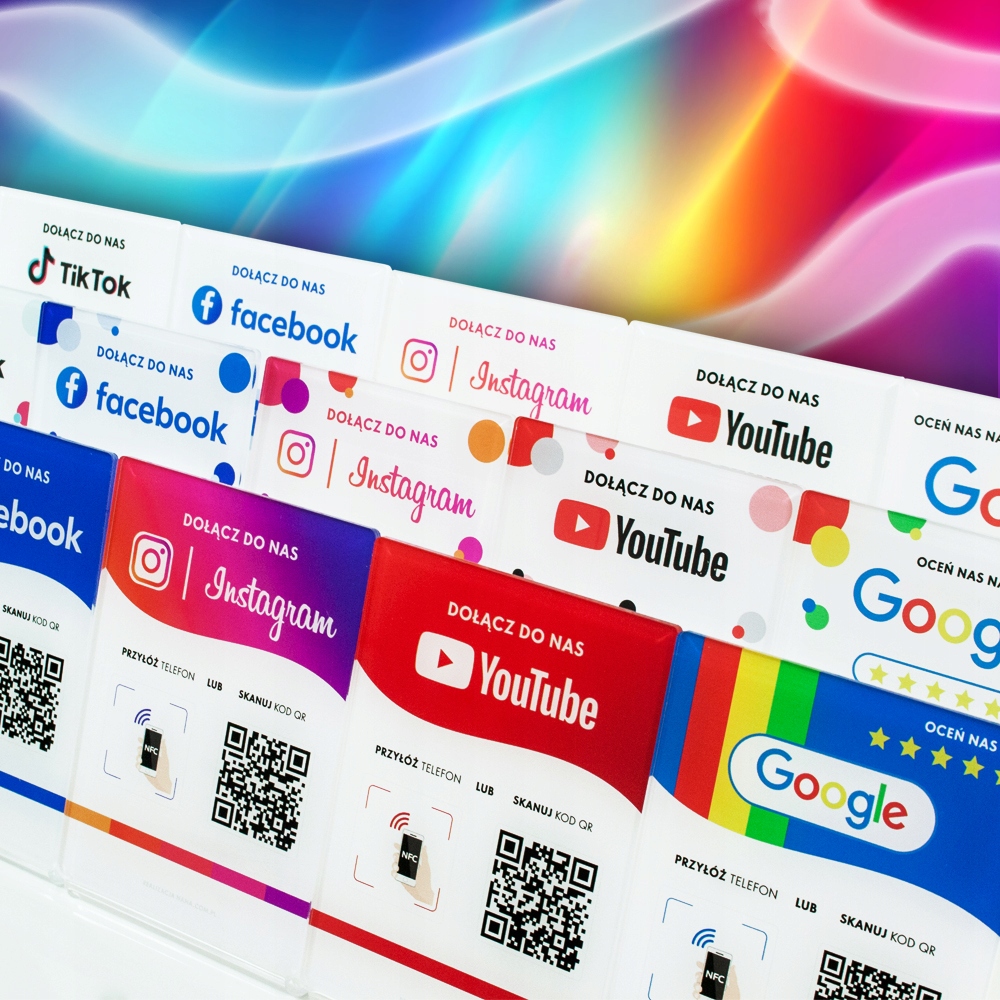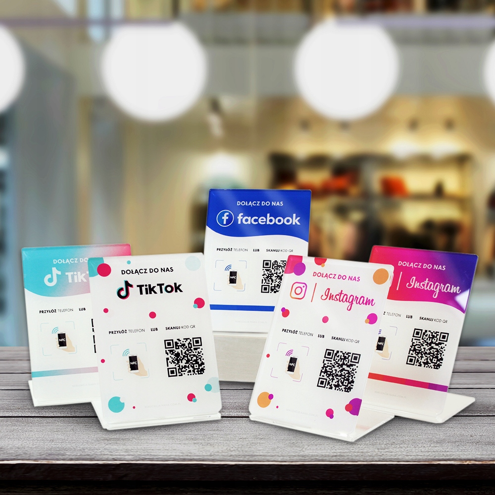 Предложение включает в себя множество дизайнов вывесок с технологией NFC, которые направляют вас на популярные порталы.