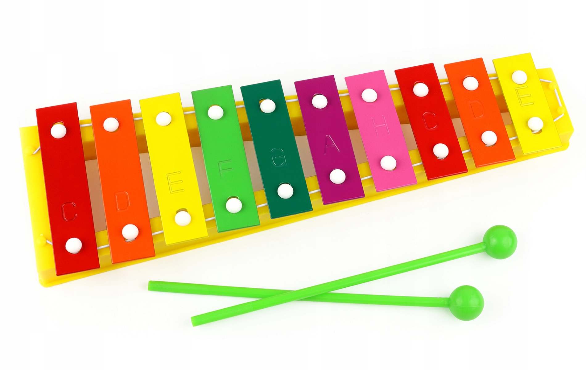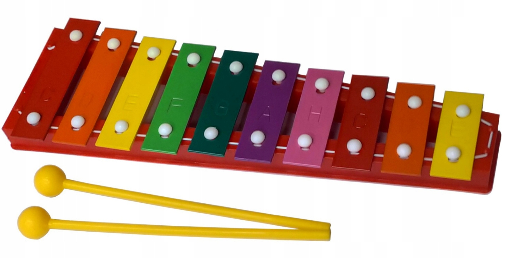 Пластинки инструмента разноцветные с буквенной маркировкой звуков.