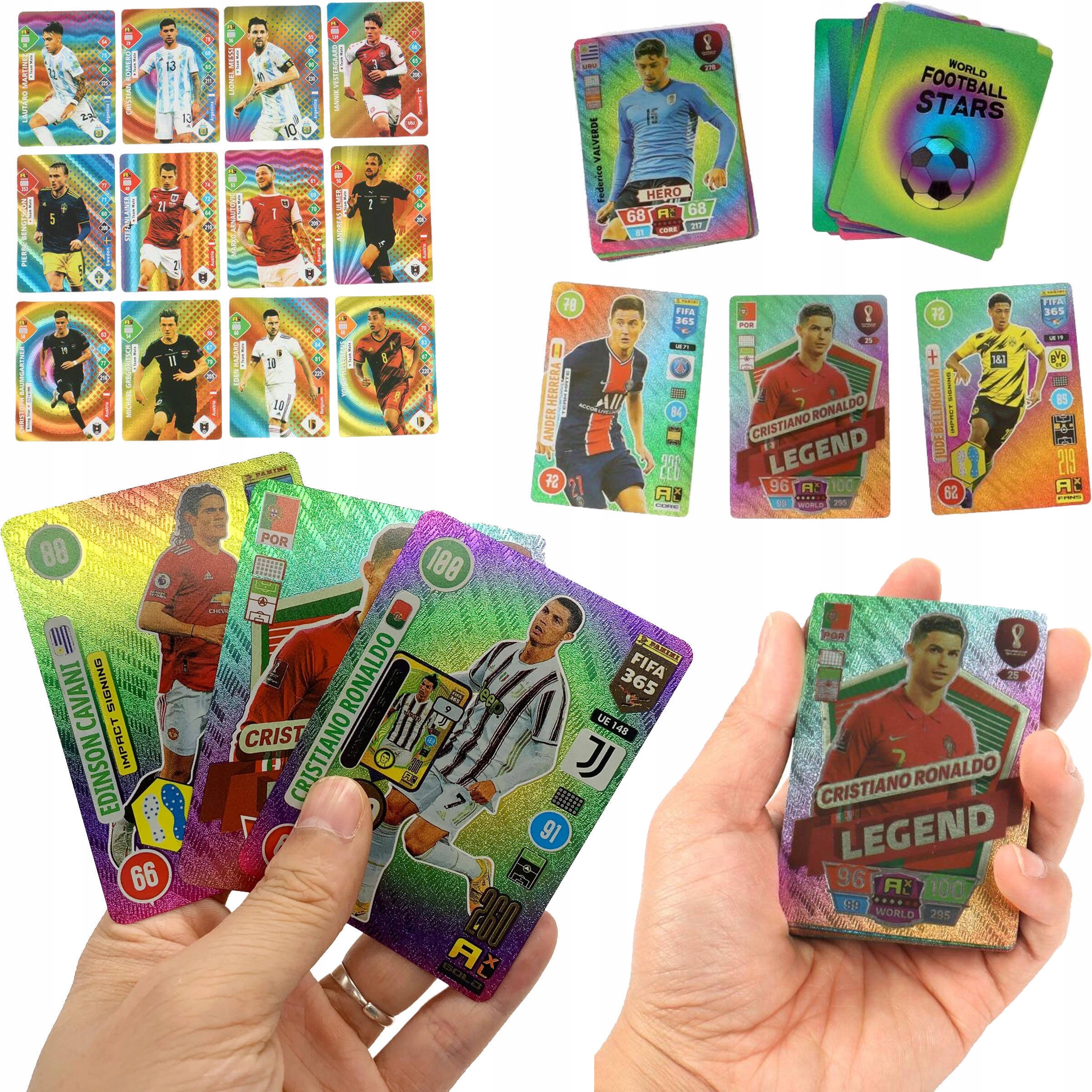 Карты, которые мы знаем и любим: В наборе вы найдете своих любимых игроков, таких как Messi, C. remonaldo, Modric, Nemar, De Bruyne, Mbappe, Kane, Di Maria и многое другое.