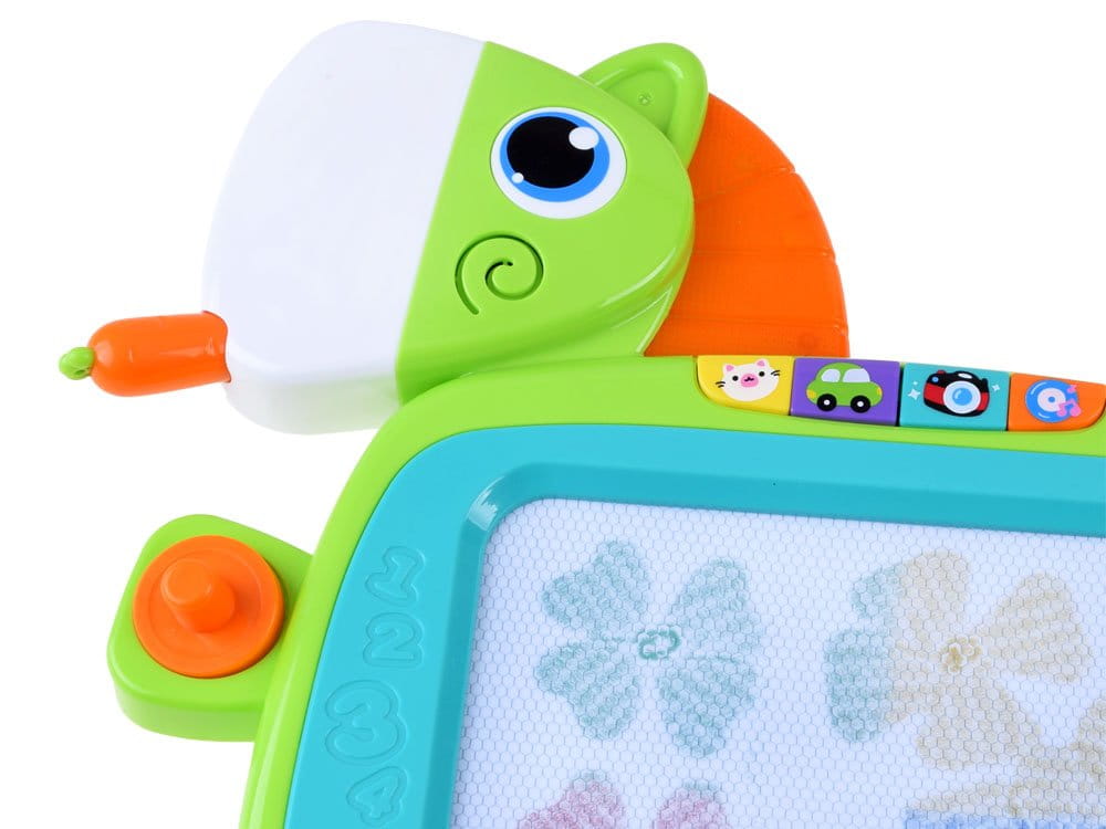 На плате вы можете рисовать, писать со стилусом или застрявшим узором с маками. После рисования морковного стилуса можно поместить в рот пони, мы услышим звук хрустящего. Творчество и изобретательность позволят вам создавать различные формы и символы. Это отлично подходит для использования творческого энтузиазма ребенка.