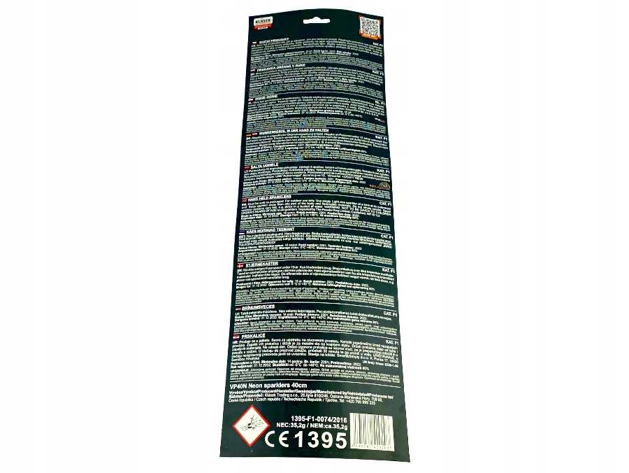 НЕОНОВЫЕ ХОЛОДНЫЕ ИСКРЫ 40 см - VP40N - KLASEK - 8 шт.