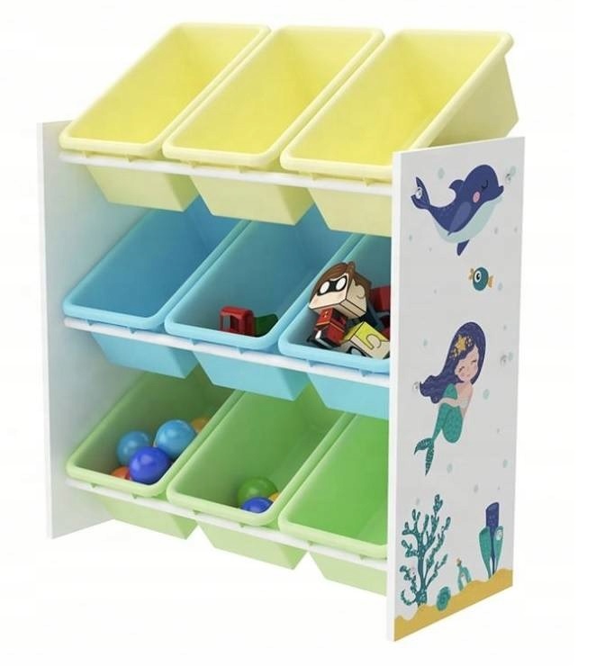 В комоде находятся 9 пластиковых контейнеров одинакового размера. Прочная и устойчивая деревянная конструкция обеспечивает долгий срок службы. Красивые прозрачные краски. Предмет мебели, предназначенный для детей от 3 лет и старше.