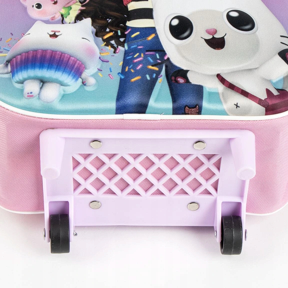Этот очаровательный детский чемодан на колесиках с мотивом волшебного дома Габины идеально подходит для маленьких путешественников. Он имеет прочную конструкцию, характерный 3D-дизайн с изображением Габи и ее кошачьих друзей и практичные колеса с выдвижной ручкой.