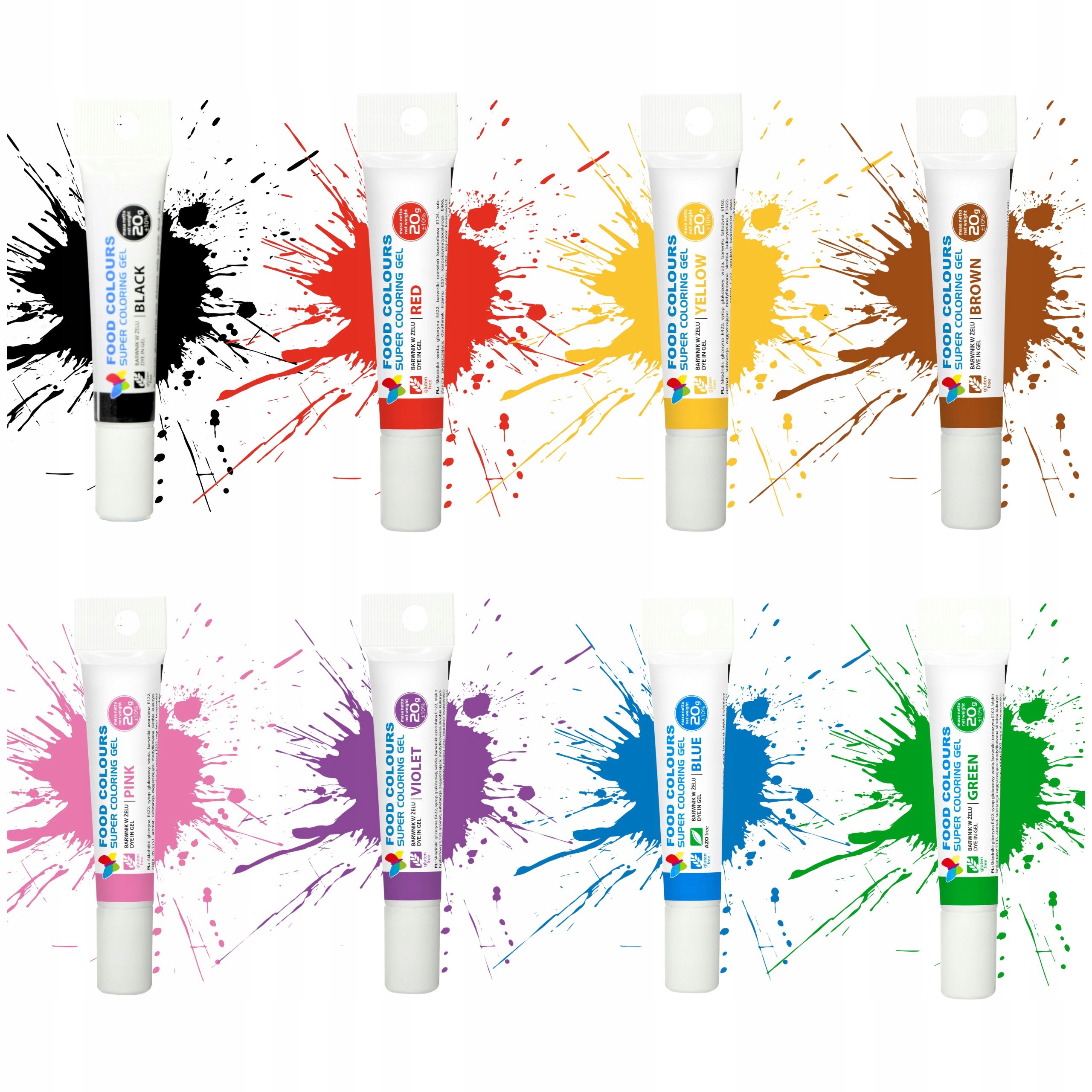 БАРВНИКИ ХАРЧОВІ В ГЕЛІ 8x20г НАБІР КОЛЬОРОВІ ЇСТІВНІ БАРВНИКИ ТЮБ