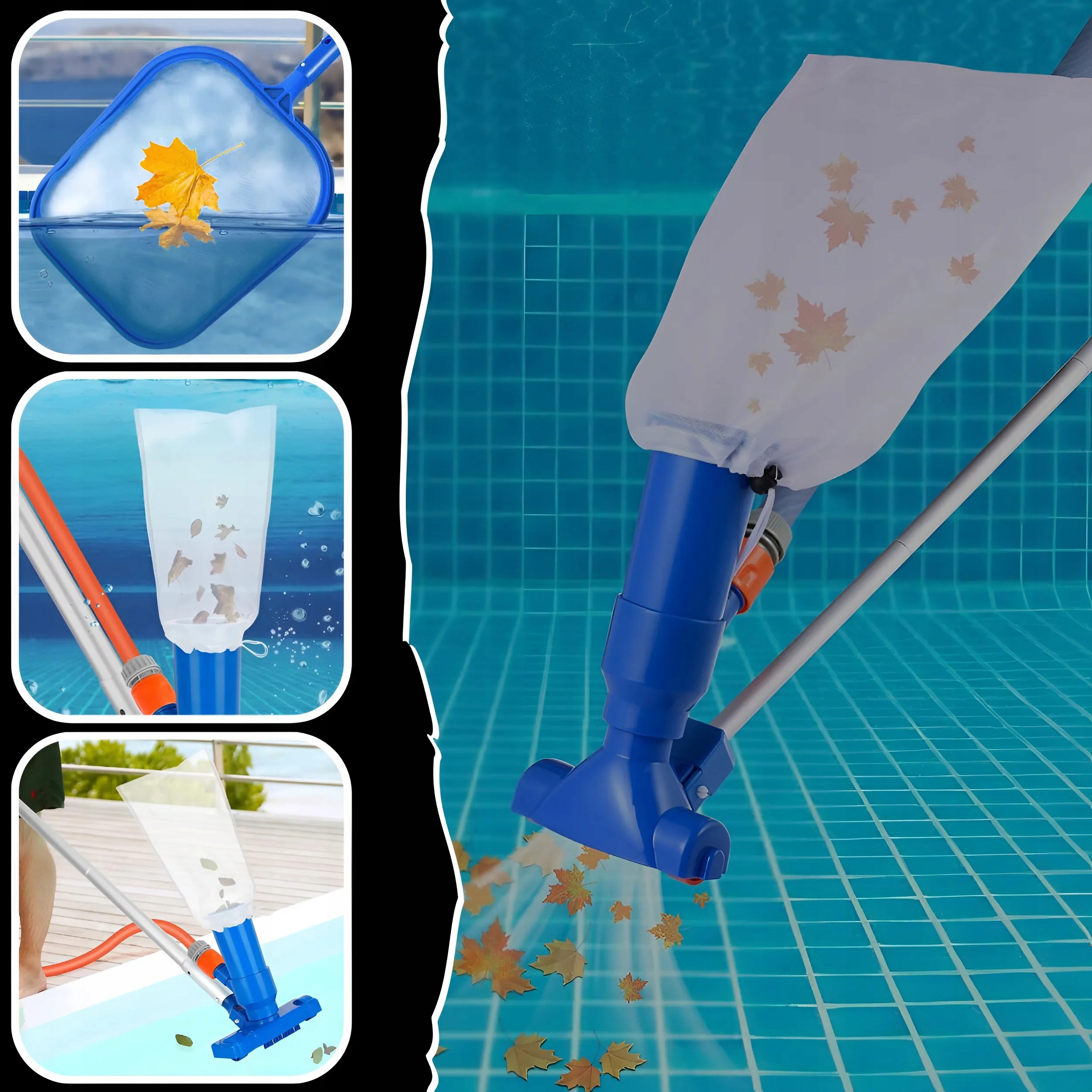 Идеальная сетка для сбора загрязняющих веществ с поверхности воды, пылесос - для удаления песка и ила со дна.