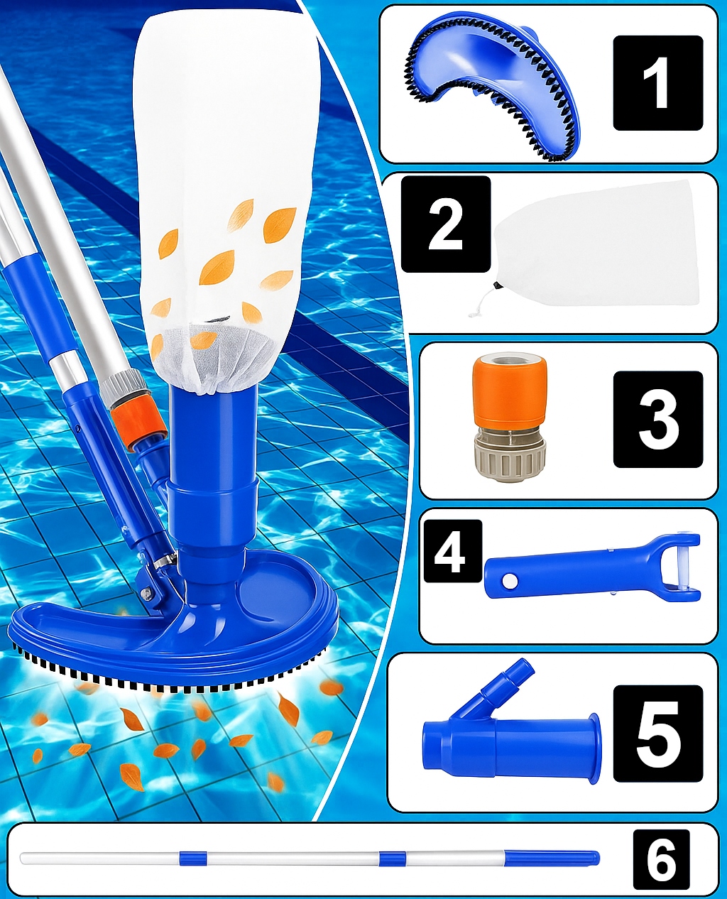 ✅ Комплект для очистки бассейна - сетка с палочкой + вакуумной очиститель для воды h1>