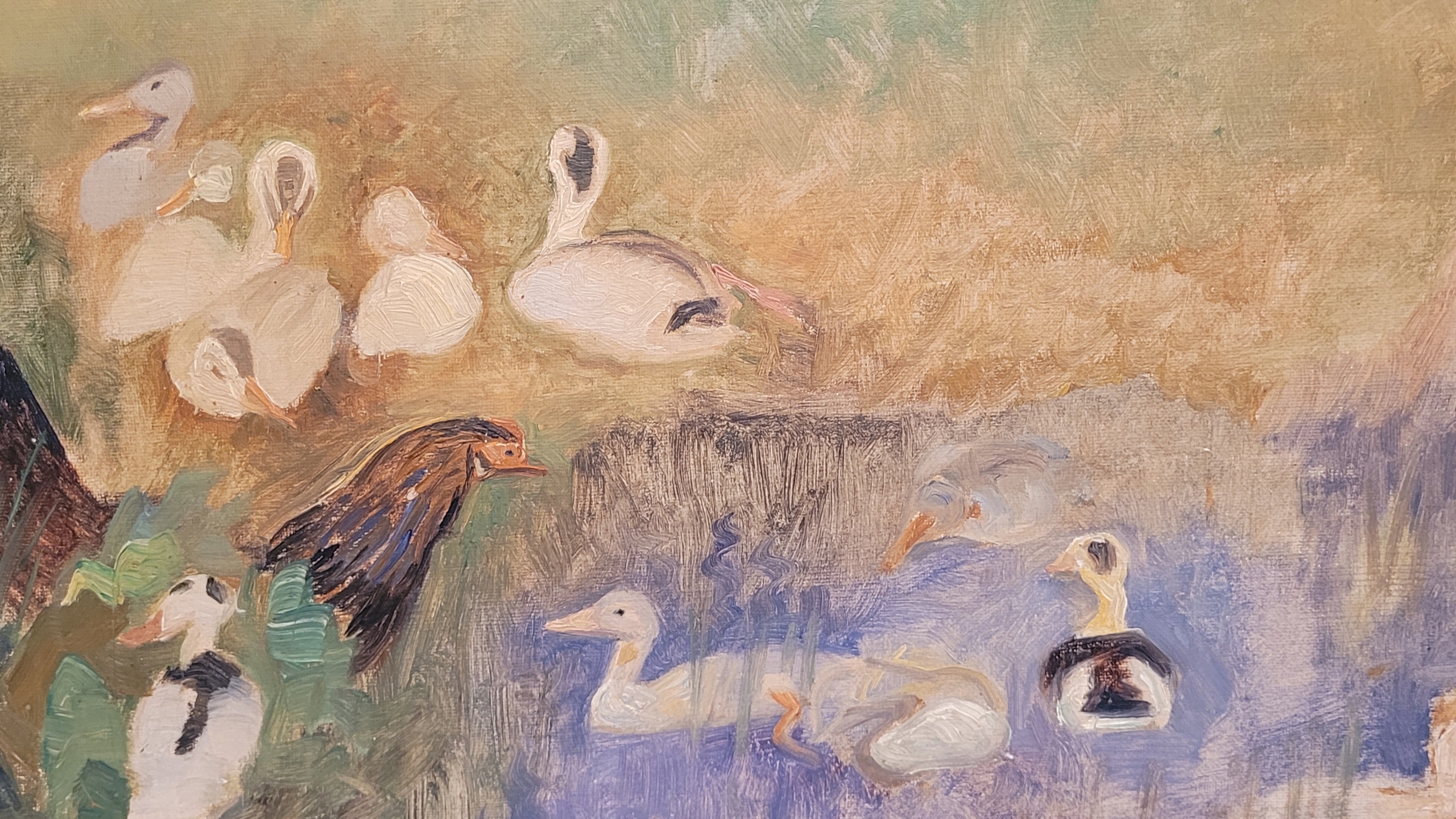 Предмет продажи — старинная картина маслом "БАССЕЙН".