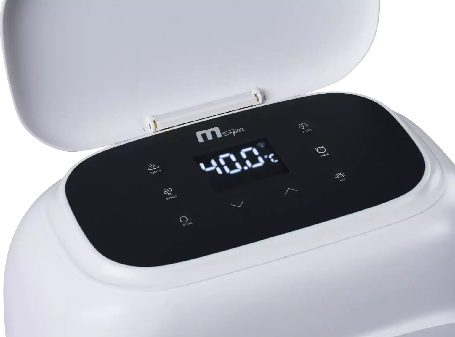 Усовершенствованная панель обеспечивает больше места для работы. Увеличенный экран и слегка наклоненный угол позволяют легко видеть снаружи во время спа-сеанса. Реализованные изменения направлены на повышение комфорта использования, все функции доступны под рукой. Панель дисплея и корпус блока управления плавно и бесшовно соединены друг с другом. Блок управления имеет элегантный и современный вид, сохраняя неизменную эстетику продукции MSpa. Благодаря темно-серому экрану все цифры хорошо видны даже в очень солнечные дни.