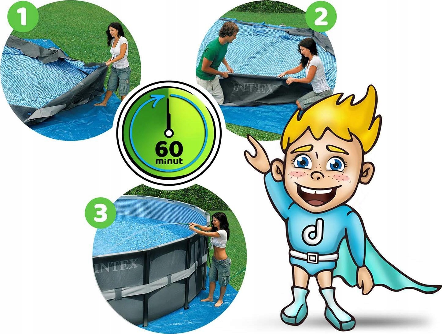 ★ Солидный бассейн с необходимым оборудованием подарит незабываемые впечатления уже в первый день!★ Бассейн легко собрать. Вы можете подготовить его самостоятельно, без использования каких-либо инструментов, всего за несколько минут.★ Выбирая бассейн INTEX со специальными аксессуарами, вы можете быть уверены, что получите высочайшее качество и все будет сочетаться друг с другом.