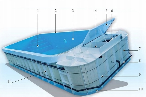 Массивное армирование (№ 11). Каркас бассейна снаружи снабжен густой сетью массивных ребер жесткости толщиной 12 мм и шириной 140 мм.Более ранняя разработка дна бассейна (нет .10). Важным статическим элементом всей конструкции бассейна является заранее застроенное дно бассейна, к которому приварены вертикальные ребра жесткости.Армирование стальными стержнями ( № 9). Чтобы окончательно завершить всю конструкцию корпуса бетонного бассейна, удлиненные стальные стержни (из ребристой стали) с ребрами жесткости крепятся в два ряда, один над другим.Надежный водораспределитель (№ 8). Труба вокруг бассейна интегрирована в вертикальные ребра, и все ее части расположены таким образом, что нет необходимости использовать какие-либо полугибкие шланги с гораздо меньшим сроком службы.Безопасные лестницы (№ 1 и 2). Эти лестницы спроектированы таким образом, что их можно забетонировать. . Если лестницы установлены в каркасе бассейна, не оставляя возможности бетонирования, существует значительный риск их поломки (односторонний сварной шов) и скопления в этой зоне примесей в виде водорослей (разрастания водорослей). li>Поверхность бассейна (№ 3). Толщина стенок бассейна (полипропилен - ПП) в зависимости от модели составляет от 6 до 10 мм.Различные решения (№ 4 и 6). Бассейн также может поставляться в версии COMPACT, как в варианте с переливным каналом, так и со скиммером. Это единичное решение с встроенным в корпус бассейна технологическим колодцем (расширительным баком в случае модели с переливным каналом).Полный электромонтаж (№6). Бассейны всегда оснащены полной электроустановкой, обеспечивающей автоматическую работу всей фильтрационной системы и других устройств. Произведенную таким образом электроустановку наши специалисты затем подключают к домашней электроустановке.Сервисное обслуживание. Мы естественно обеспечиваем качественное гарантийное и послегарантийное обслуживание, в рамках которого мы можем в кратчайшие сроки устранить любые повреждения и дефекты каркаса бассейна или поставляемого оборудования и аксессуаров.Современные технологии . Бассейн оснащен новейшей бассейновой техникой высочайшего качества от известной испанской компании ASTRAL. li>Точные расчеты. Все модели наших бассейнов подвергаются точным статическим расчетам с помощью программы NEXIS 32, что приводит к оптимизации всей конструкции с учетом ее длительного использования. Большое разнообразие. Широкий выбор Ассортимент отдельных типов бассейнов и их моделей позволит удовлетворить все требования и потребности как более, так и менее взыскательных клиентов.Нижний водозабор. Бассейн обычно оборудуется нижним вход для лучшей циркуляции воды. Также может быть использован для полного слива воды из бассейна.Монтаж на месте. Также возможен монтаж бассейна на месте, непосредственно у заказчика. .<