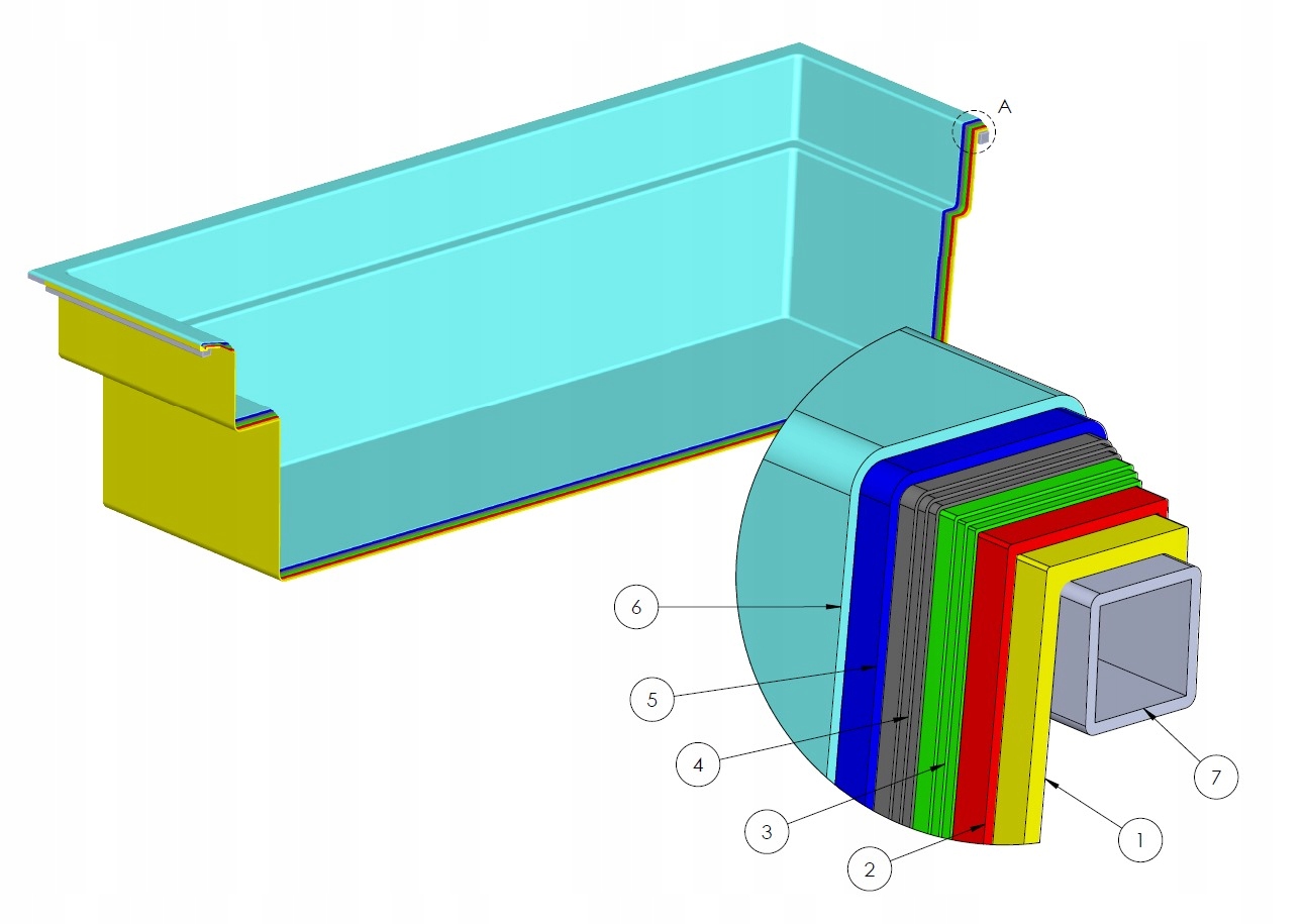 <р>1. Гелькоут <р>2. Антиосмотическое покрытие <р>3. Тройной слой армирования <р>4. Тройной строительный слой <р>5. Армирующий слой <р>6. Изоляционный слой (пенополиуретан) <р>7. Стальной профильПреимущества покупки у нас: