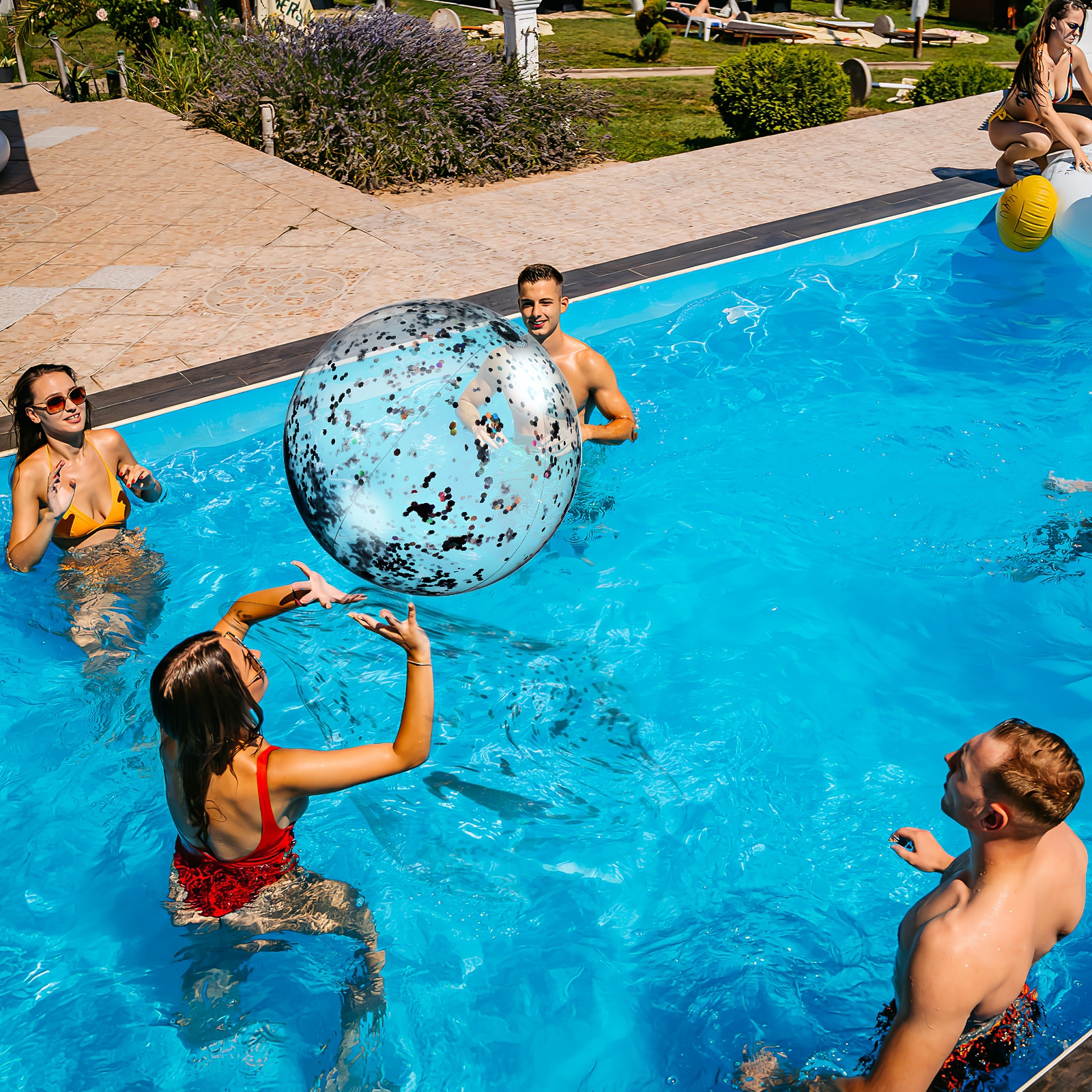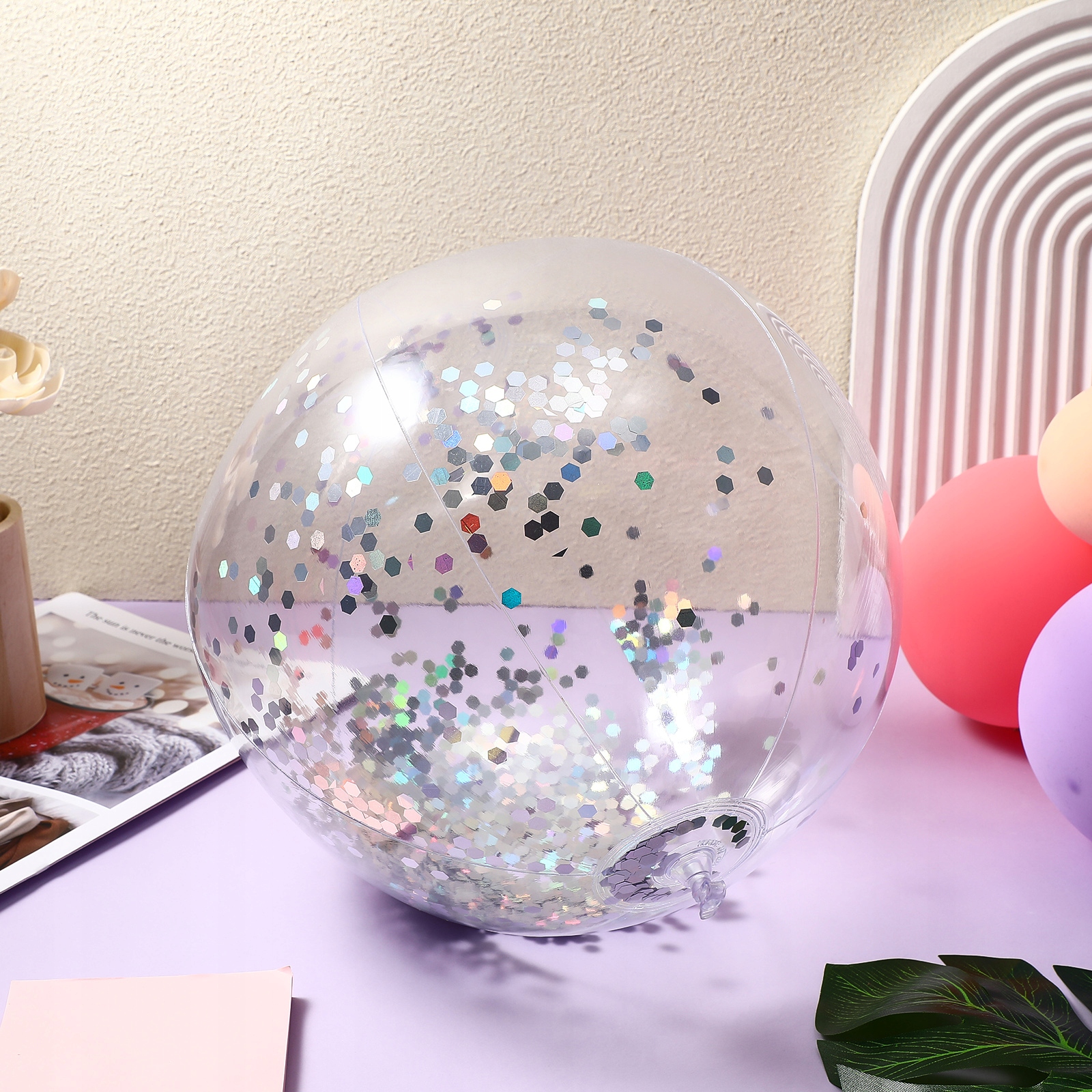 ✅Пляжный мяч имеет блестки, которые можно встряхивать внутри, что особенно красиво смотрится на солнце.