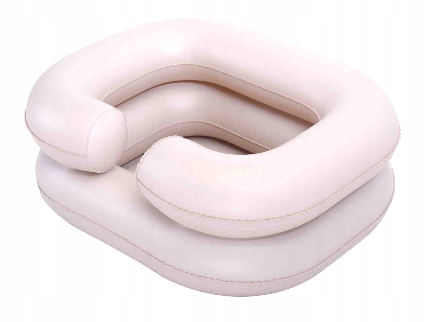 Надувной бассейн предназначен для мытья головы, например в постели. Просто поместите чашу под голову. Для удобства использования он имеет две воздушные камеры, каждая со своим отверстием для накачивания. Можно надувать через рот или насосом.