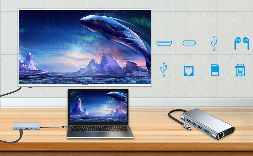 Адаптер концентратора USB -концентрации USB C -порта: соединение с телевизором, проектором, монитором и другими устройствами с большим экраном, которые более удобны для работы в офисе. Зарядные устройства с помощью Hub