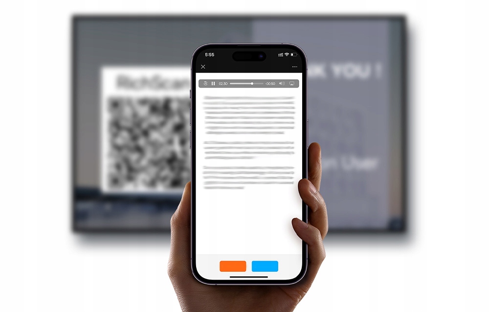 С помощью пульта вы можете легко подготовить конспекты к презентации или лекции. Устройство оснащено встроенным микрофоном с шумоподавлением и использует технологию распознавания речи IFLYTEK A.I, которая обеспечивает точное преобразование звука в текст. Он также может переводить с китайского на английский и создавать субтитры — идеально подходит, например, для международных конференций. Более того, после завершения записи будет создан QR-код. Отсканируйте его, чтобы загрузить и поделиться документом с сохраненным речевым текстом!