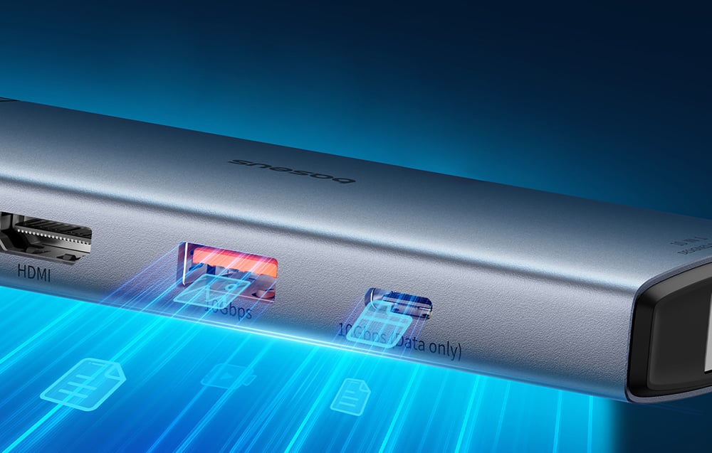 Baseus Metal Gleam Series II — мощный хаб, с помощью которого можно не только отображать документы на проекторе, передавать данные на скорости 10Гбит/с , слушайте музыку, а также заряжайте свой телефон или ноутбук мощностью 100 Вт. Усовершенствованная технология BCT (Baseus Cooling Technology) обеспечивает полное охлаждение устройства и безопасность зарядки. Порты USB-C и USB-A адаптированы к технологии USB3.2 второго поколения, которая обеспечивает высокоскоростную передачу данных.