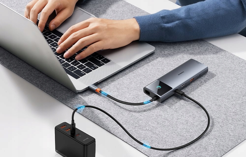 С помощью порта USB-C(PD) вы можете заряжать свои устройства с входной мощностью 100 Вт (выходной мощностью 85 Вт) - ваш ноутбук будет заряжен мгновенно! Для вашей безопасности концентратор имеет многочисленные средства защиты, например, от слишком высокого тока или короткого замыкания — как только обнаруживается неисправность, ток немедленно отключается. Технология BCT обеспечивает эффективное рассеивание тепла, выделяемого во время зарядки.