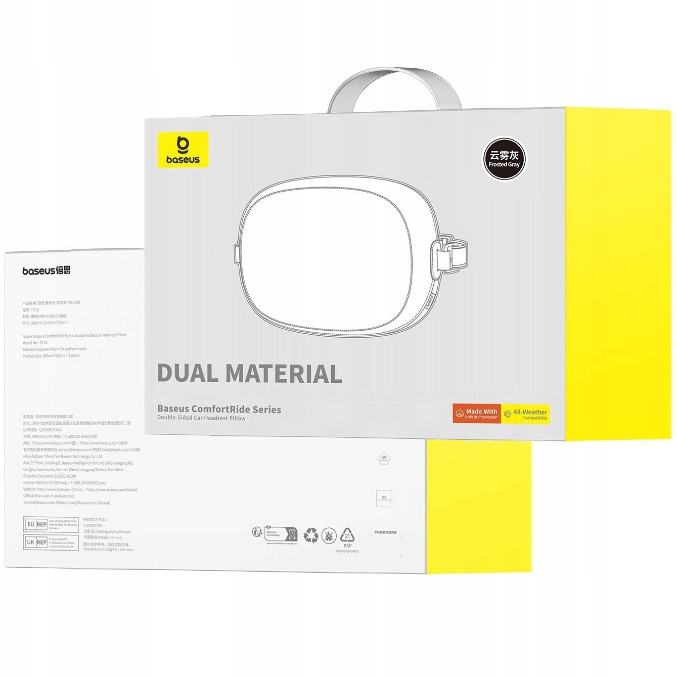 - Модель: Baseus ComfortRide Series, двухсторонняя подушка на подголовник автомобиля, матовый серый