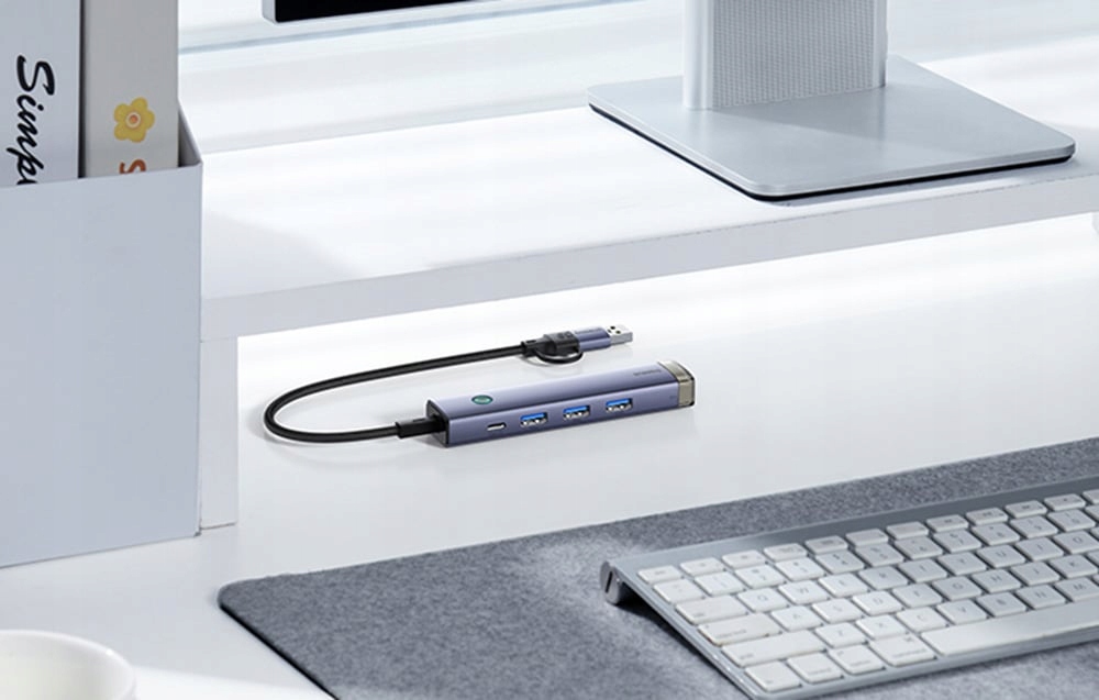 baseus ultrajoy 4in1 - это концентратор, который переносится на компьютере на новый уровень. Предлагает 3 портов USB3.0, один порт USB-C и порт Gigabit Ethernet, , а также позволяет отправлять файлы со скоростью до 5 Гбит/с.